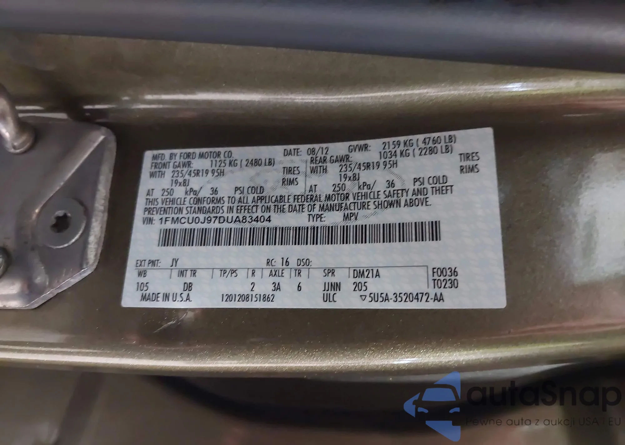 LOT: 43962937 VIN: 1FMCU0J97DUA83404