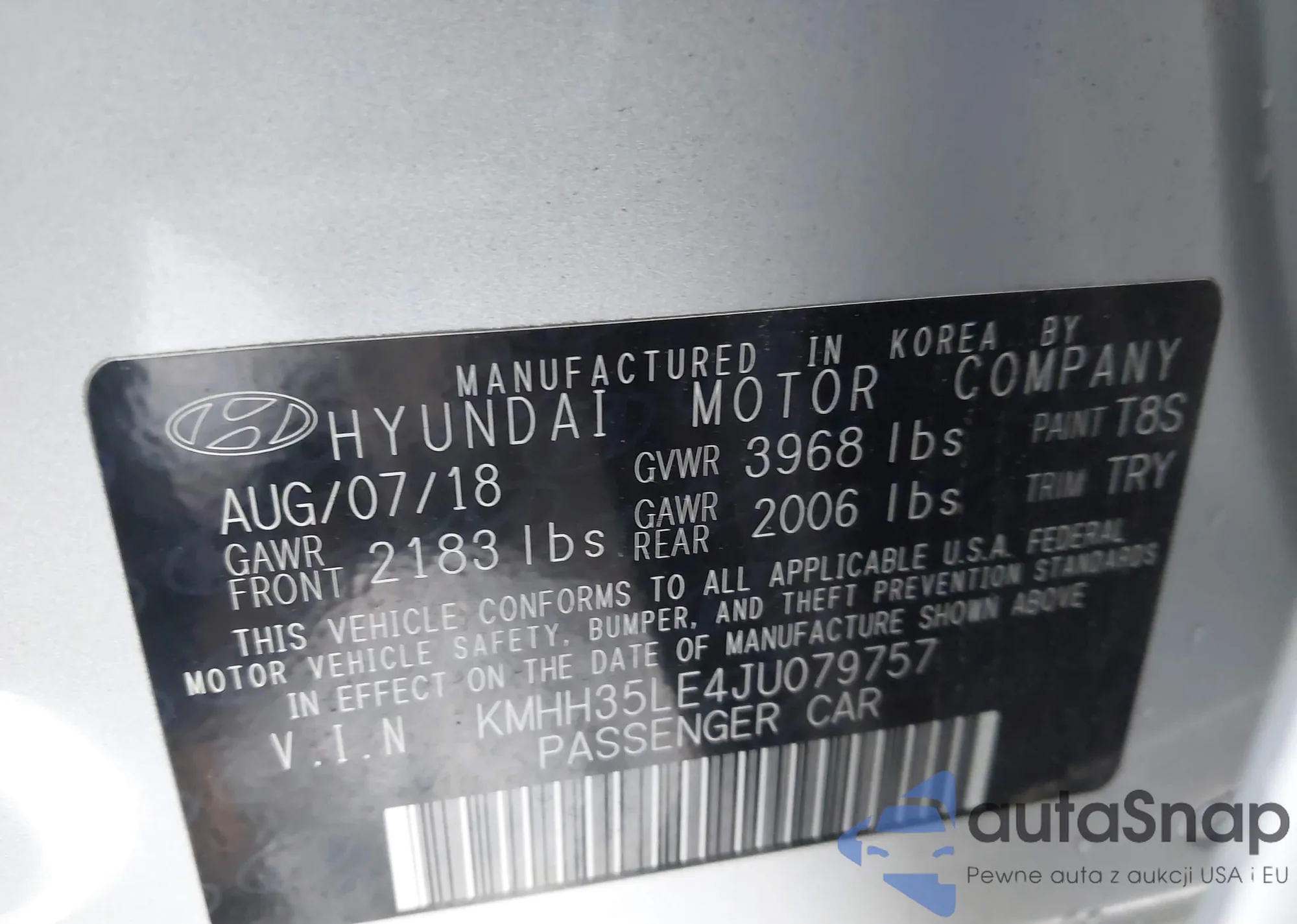 • VIN KMHH35LE4JU079757