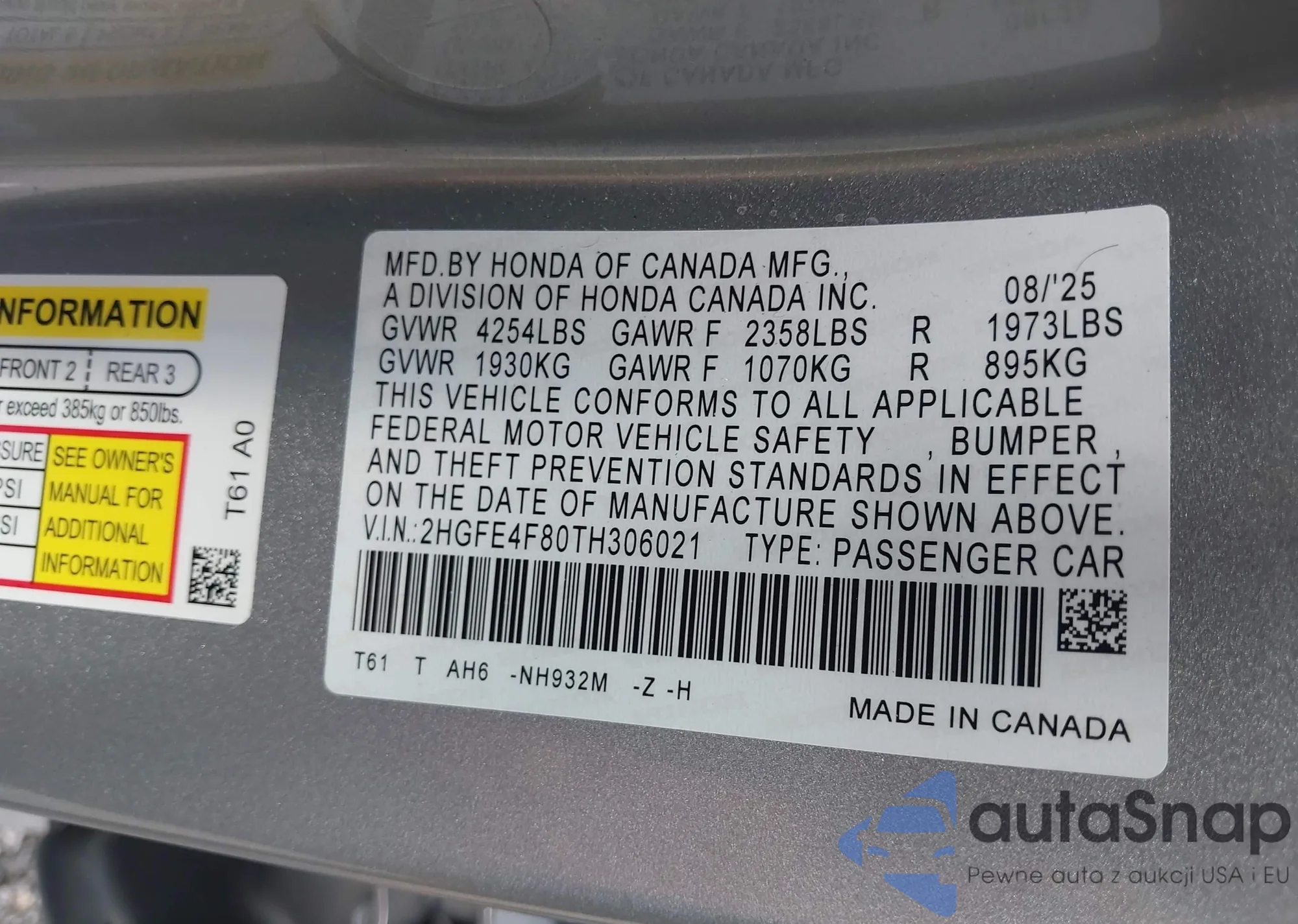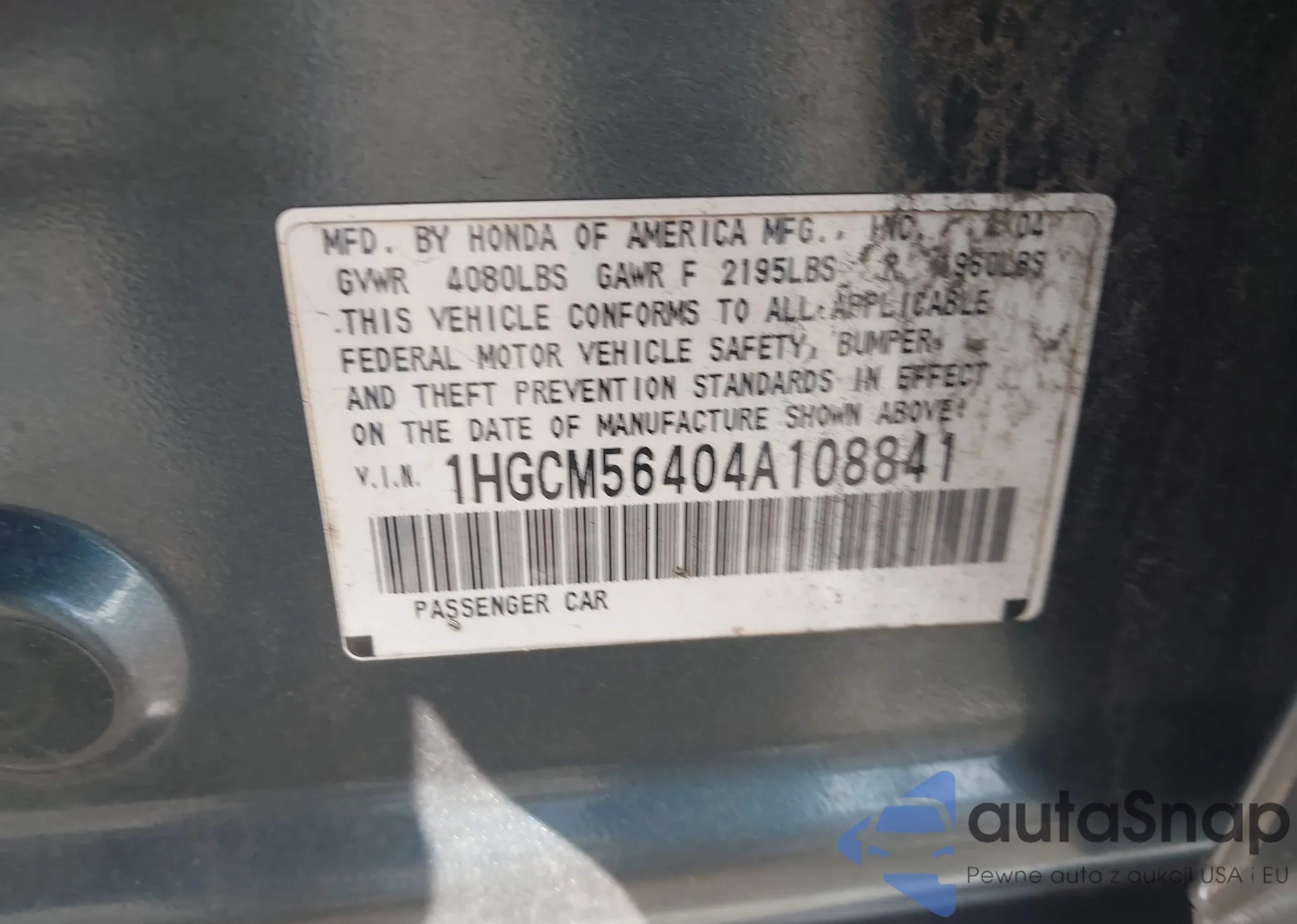 LOT: 43585461 VIN: 1HGCM56404A108841