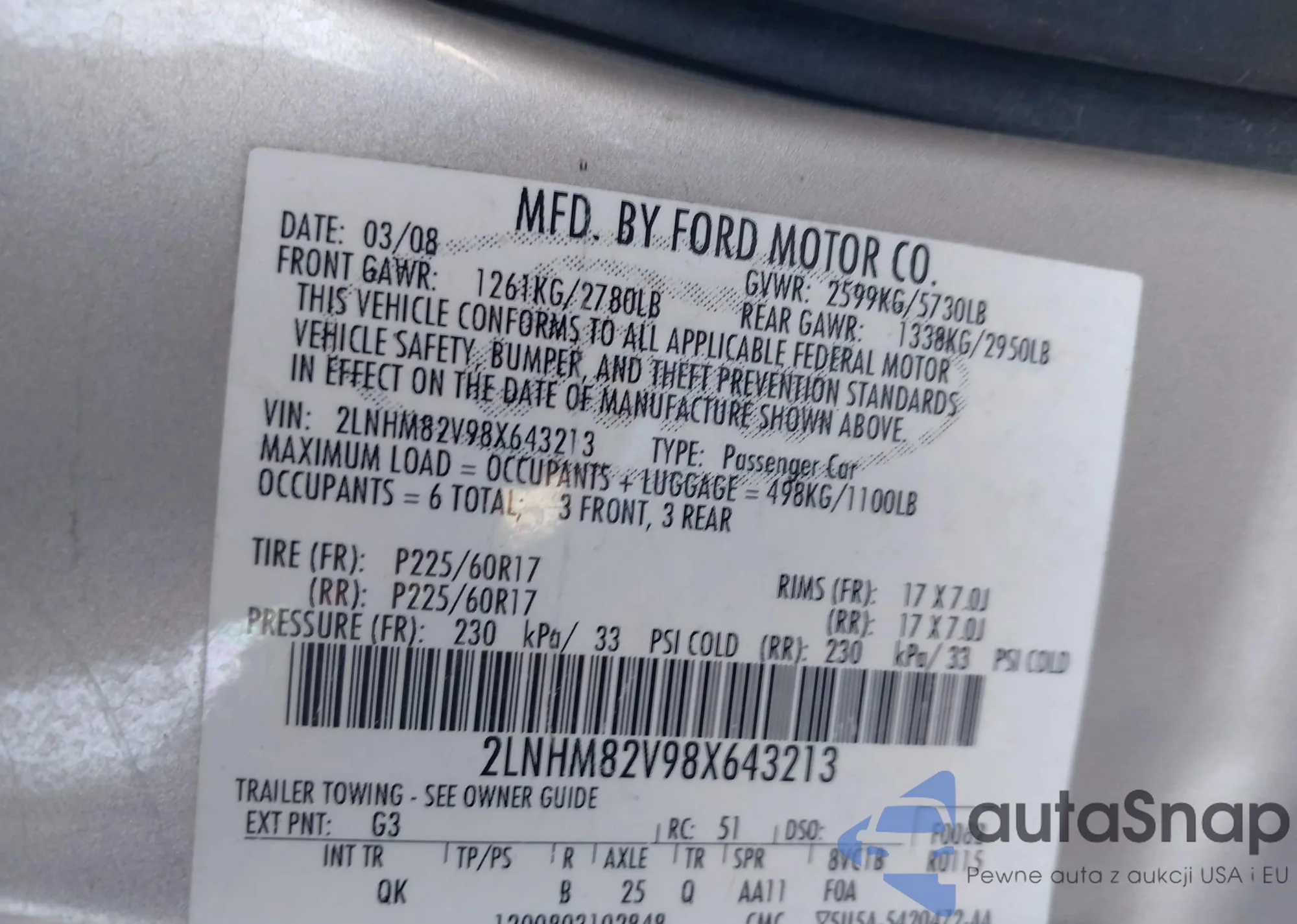 LOT: 43543296 VIN: 5GAER23768J173562