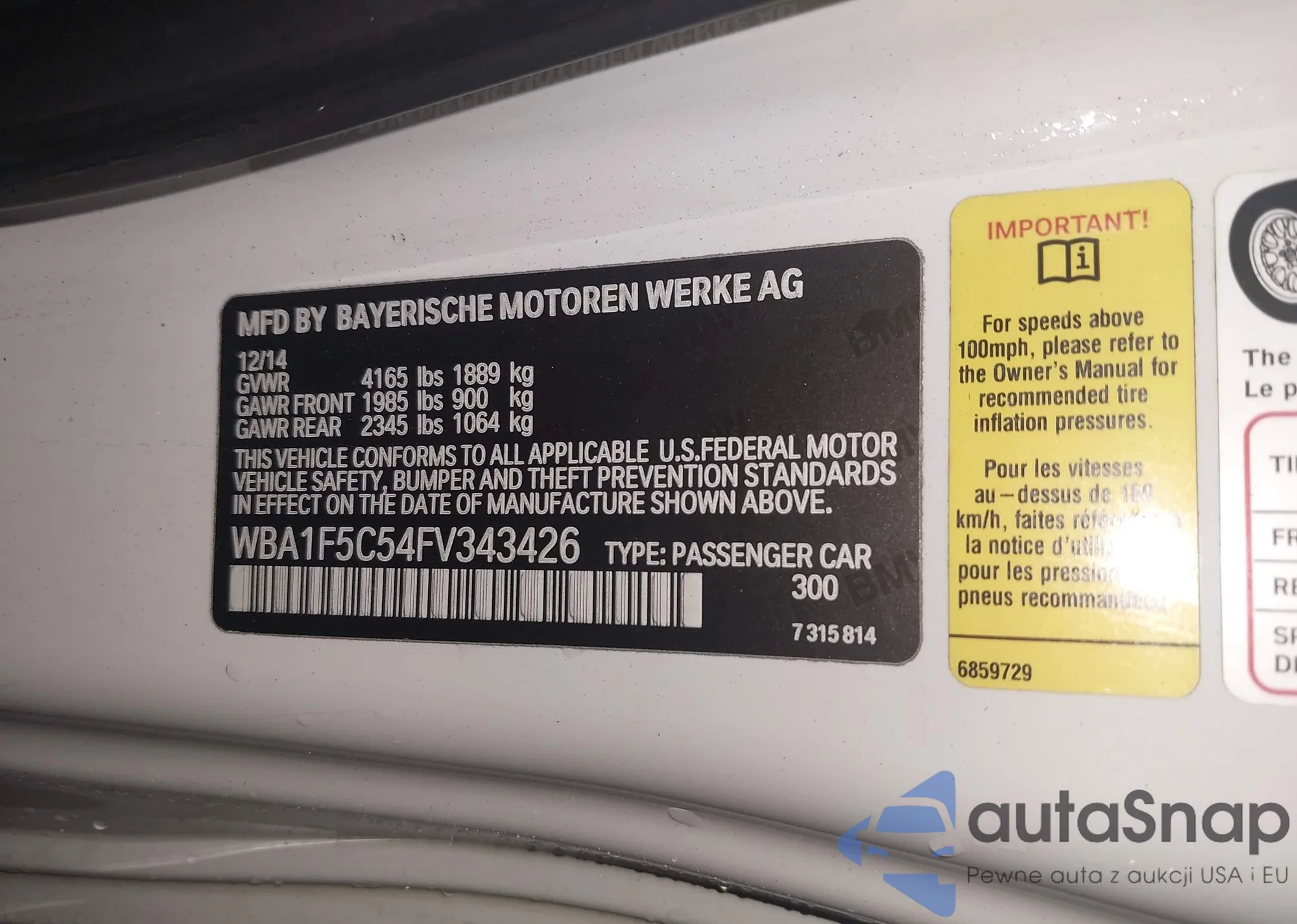 LOT: 43570994 VIN: WBA1F5C54FV343426