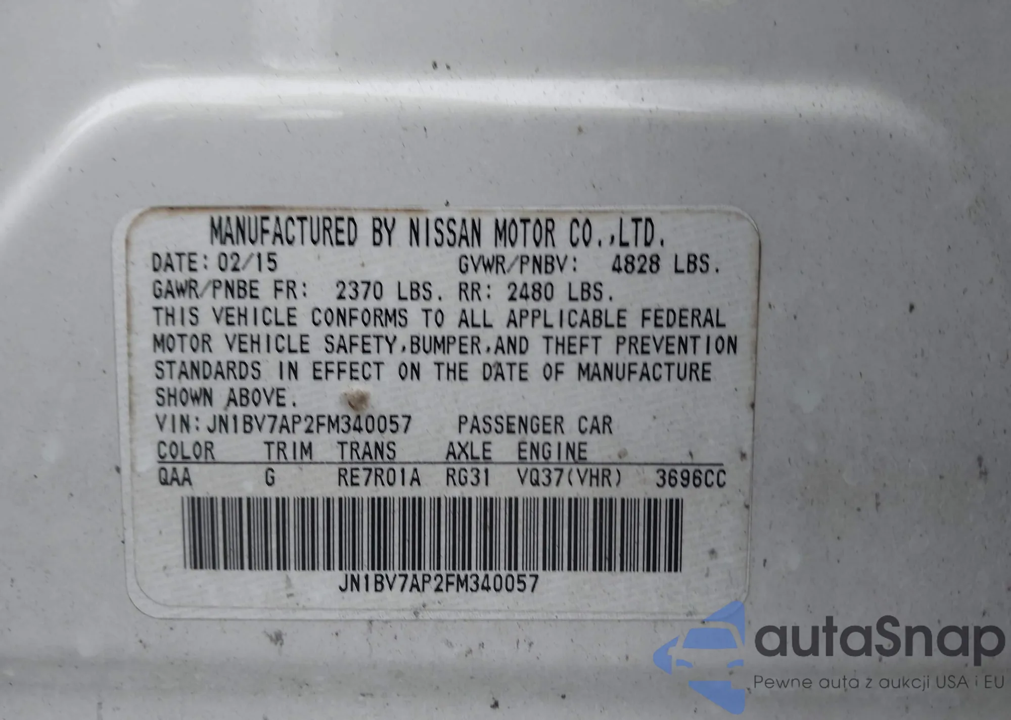 LOT: 43607990 VIN: JN1BV7AP2FM340057