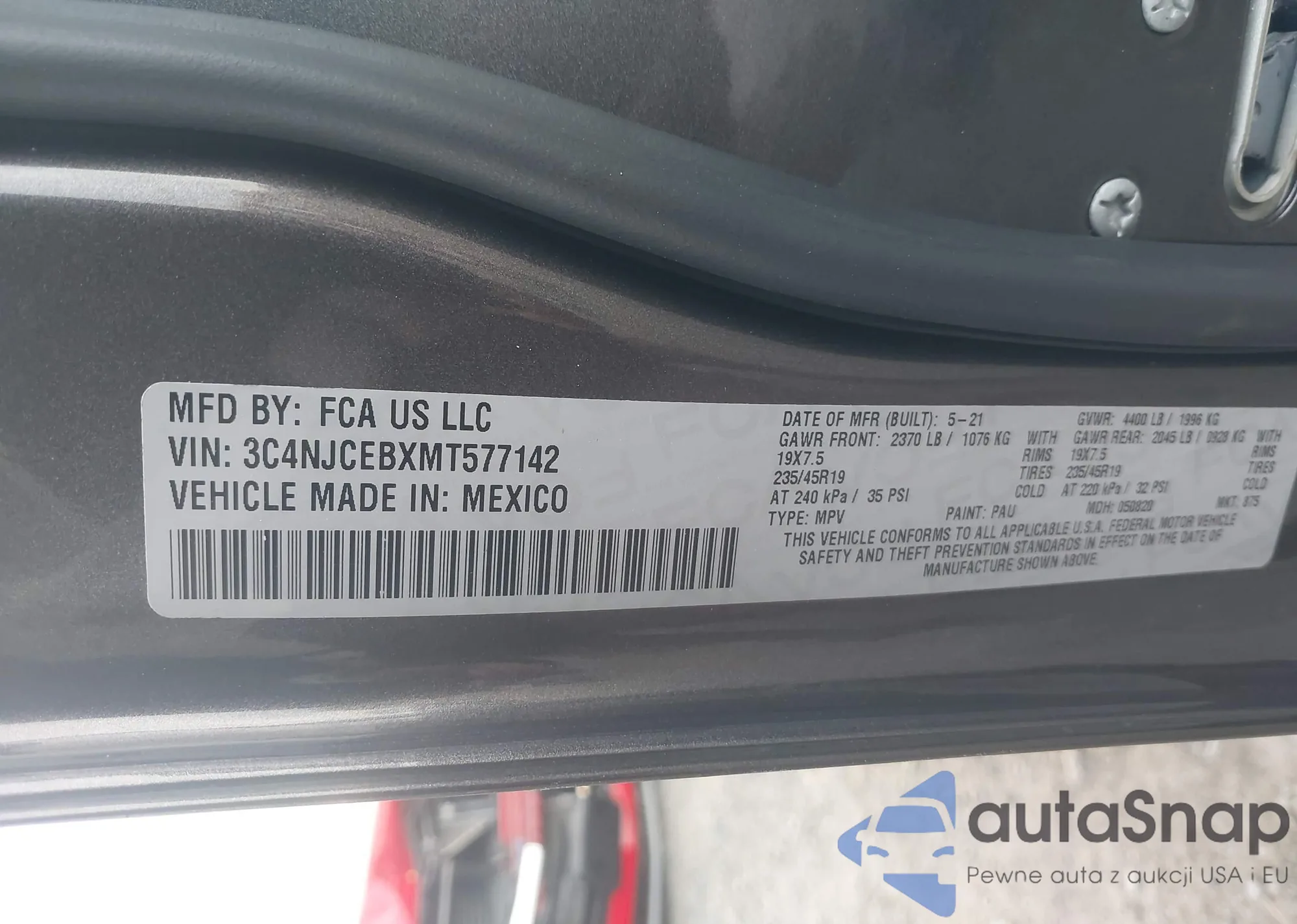 • VIN 3C4NJCEBXMT577142