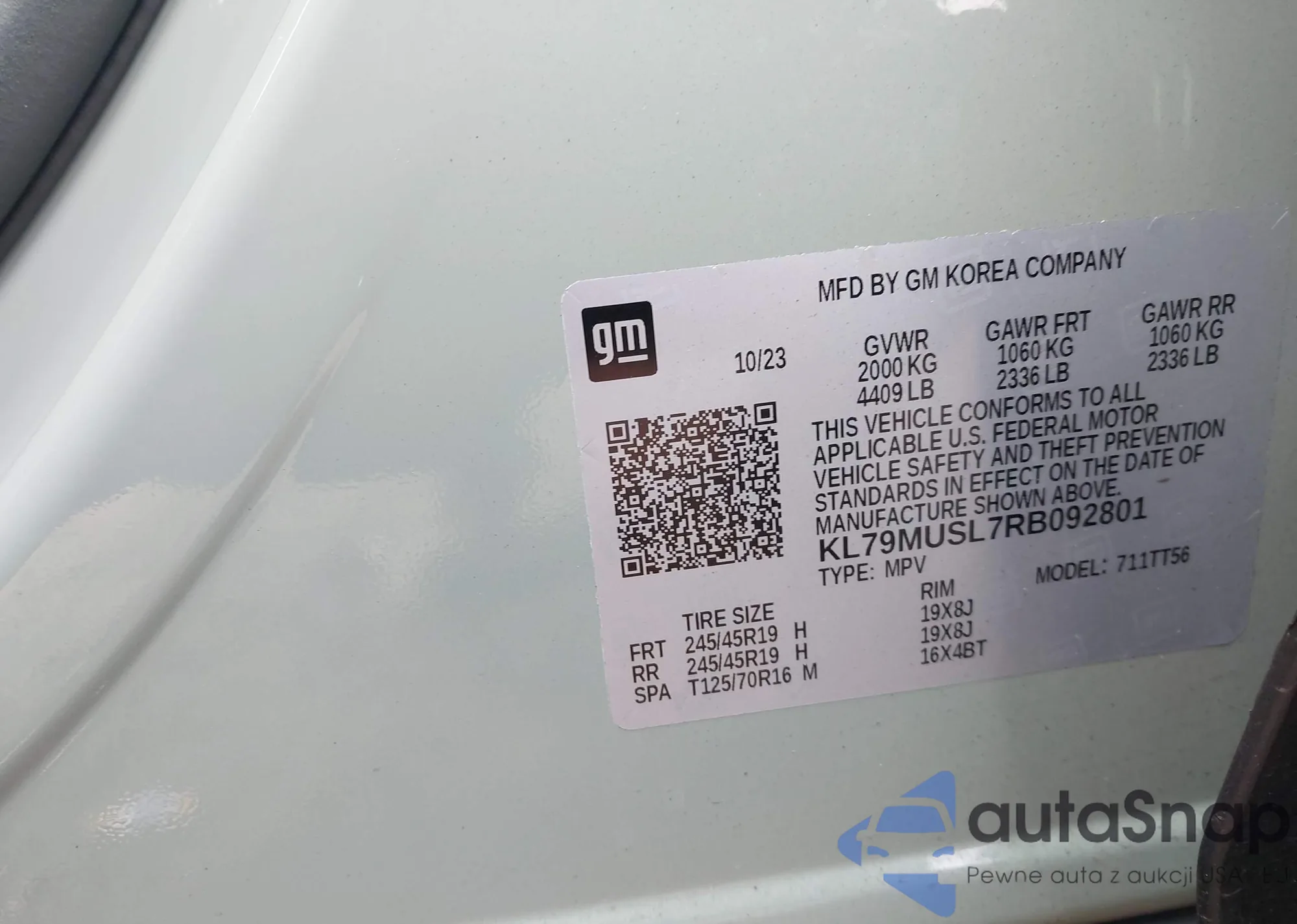 • VIN KL79MUSL7RB092801