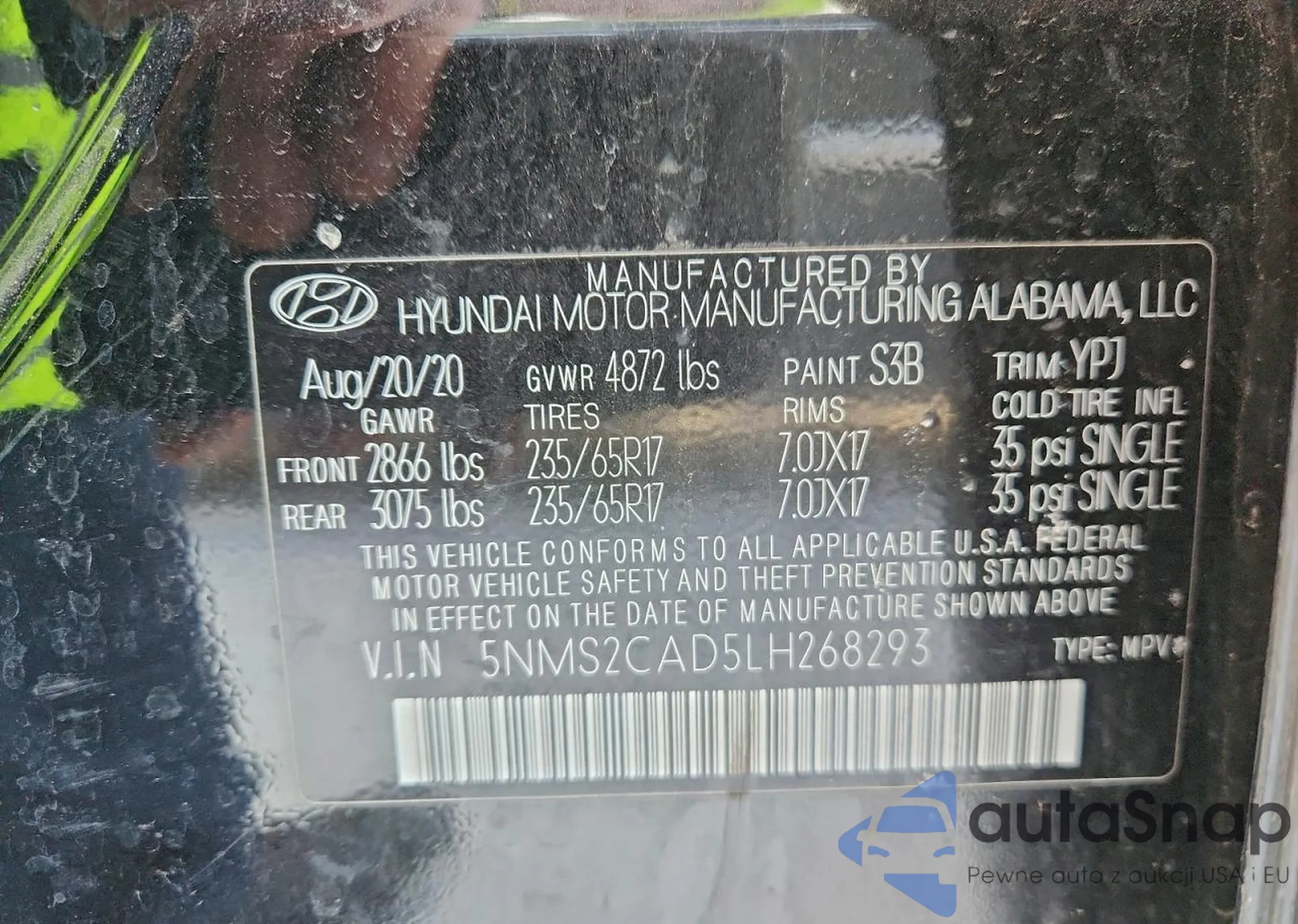 • VIN 5NMS2CAD5LH268293