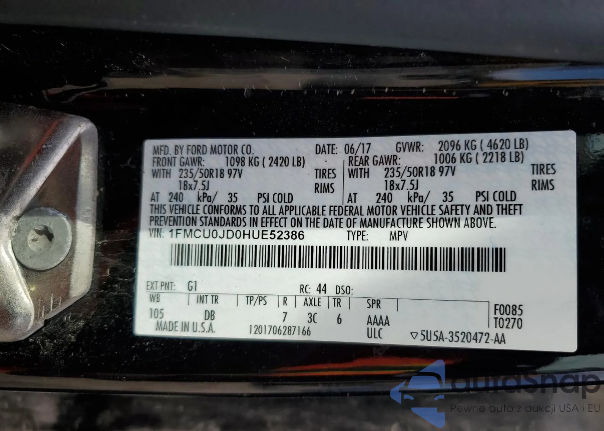 • VIN 1FMCU0JD0HUE52386