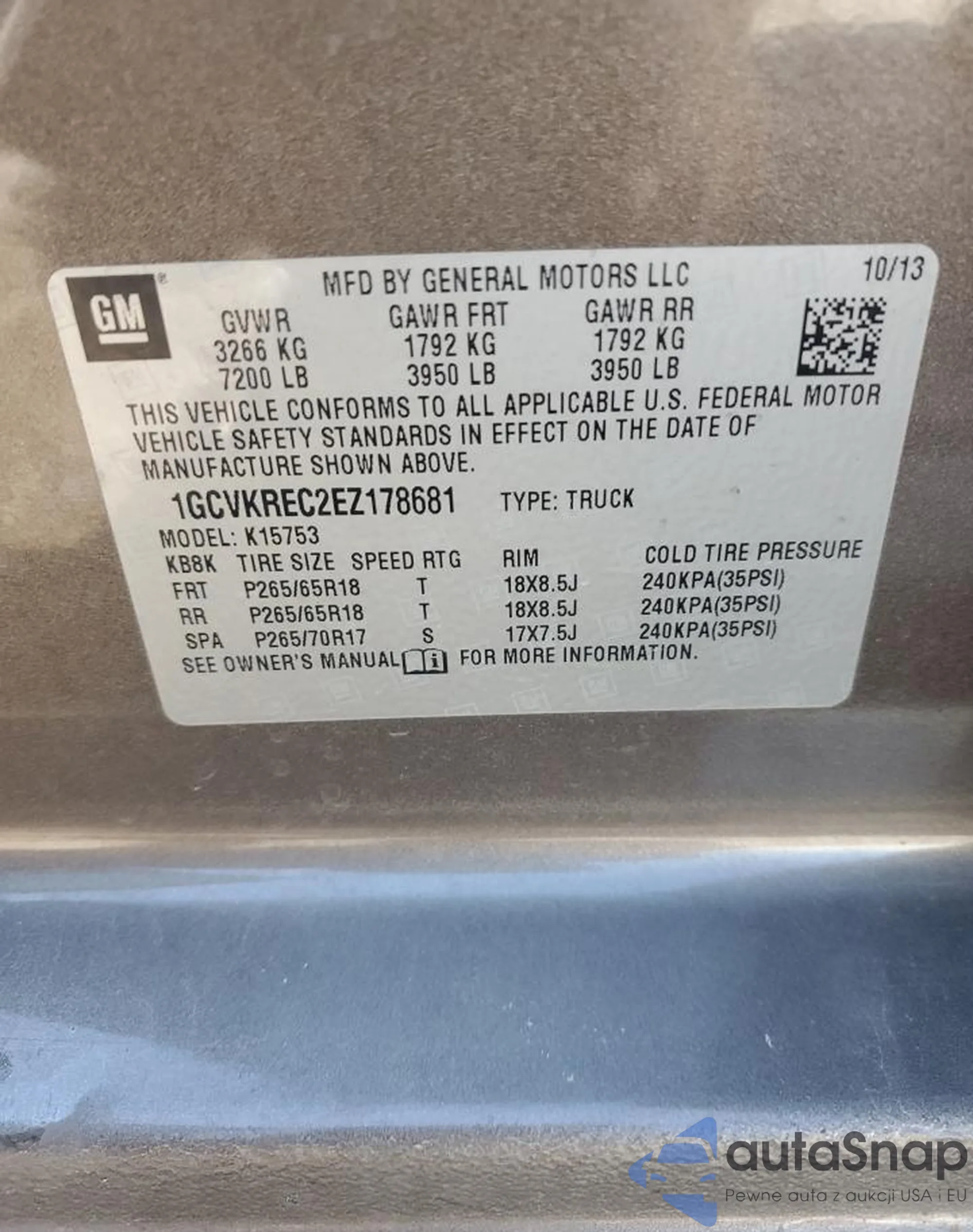 • VIN 1GCVKREC2EZ178681