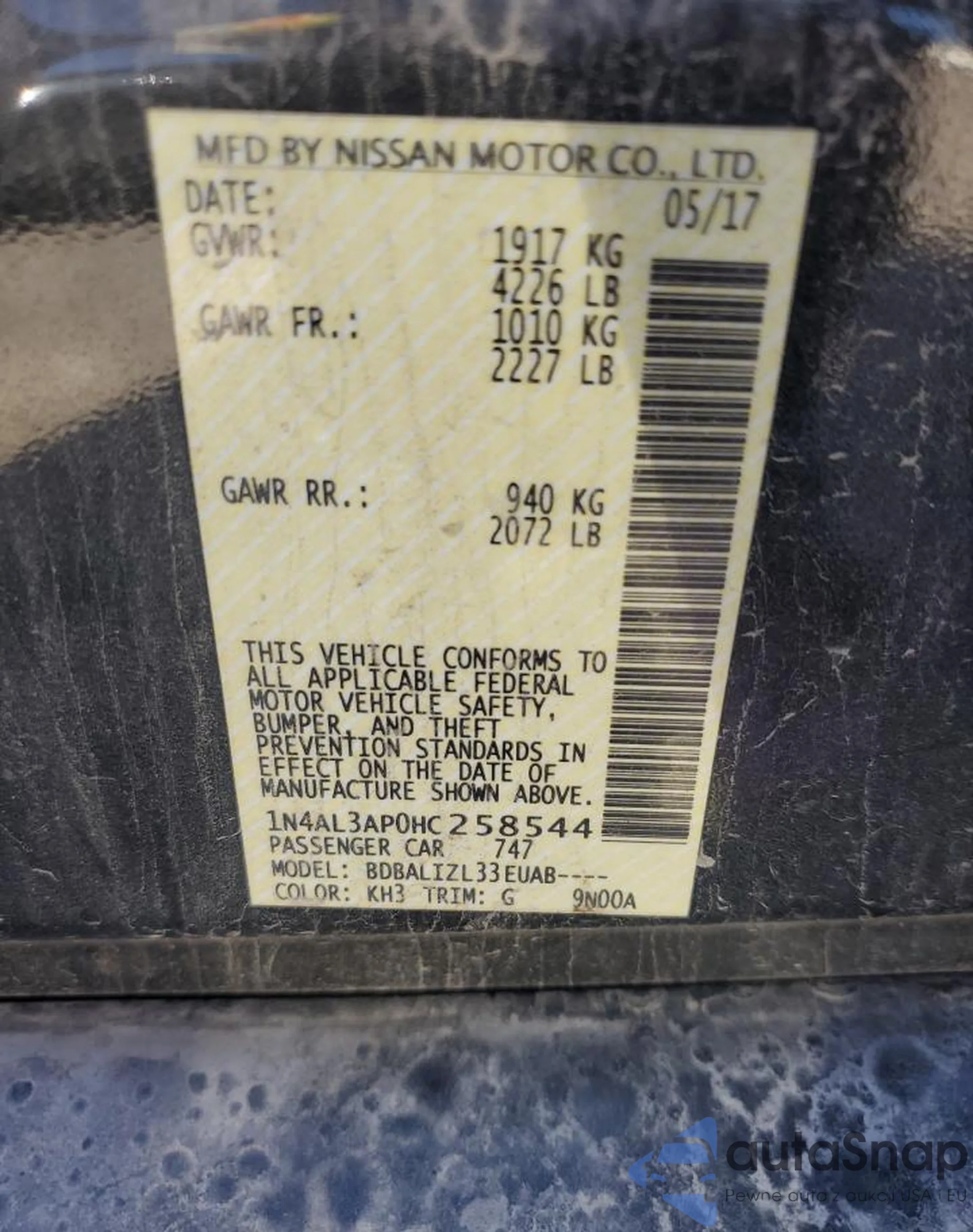 LOT: 91436875 VIN: JA4AR3AU7HZ060565