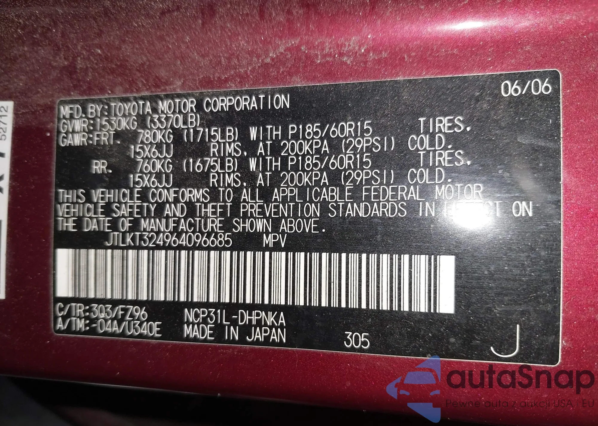 LOT: 43769924 VIN: JTLKT324964096685