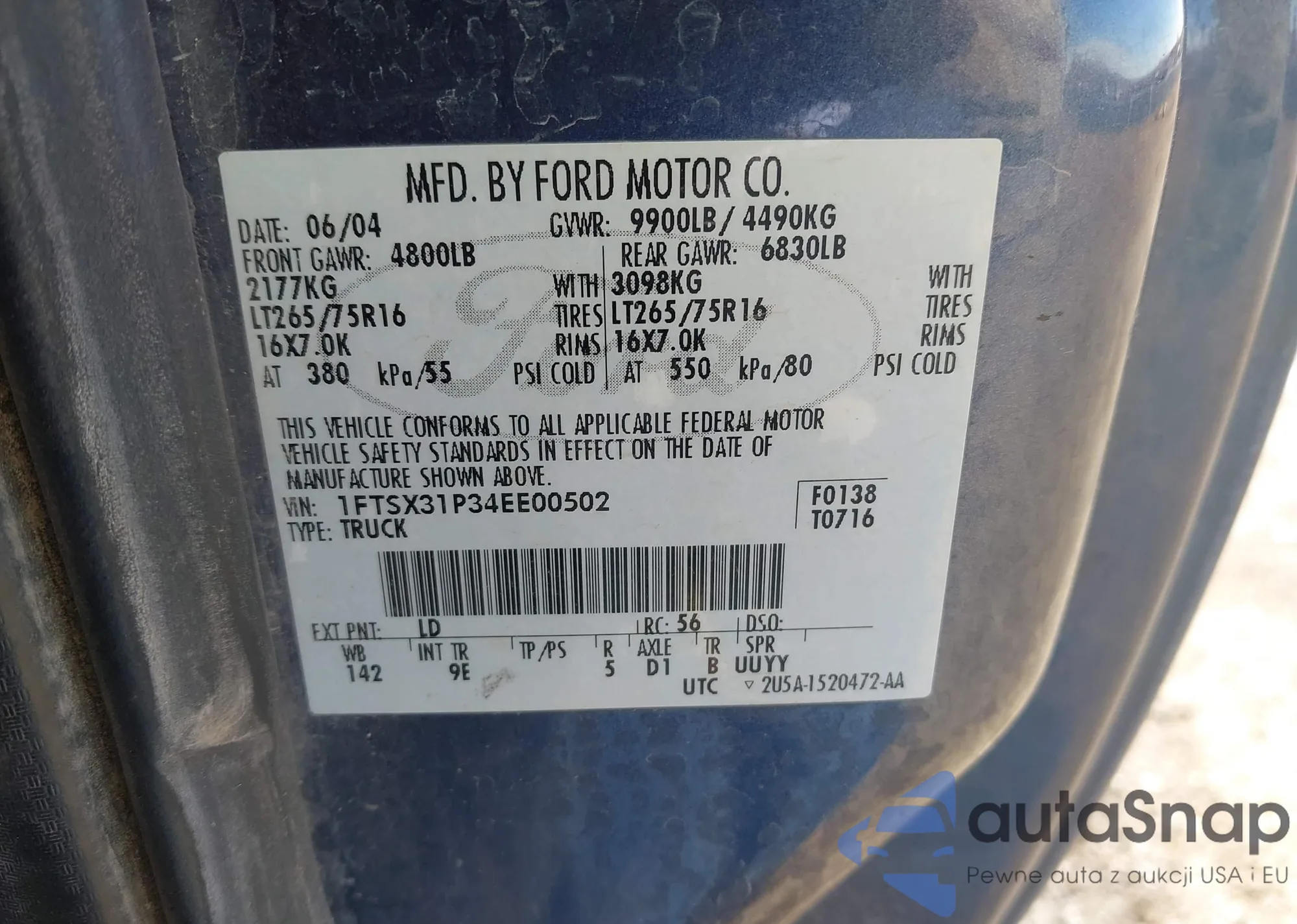 LOT: 97371845 VIN: 3KPFT4DE5SE098208