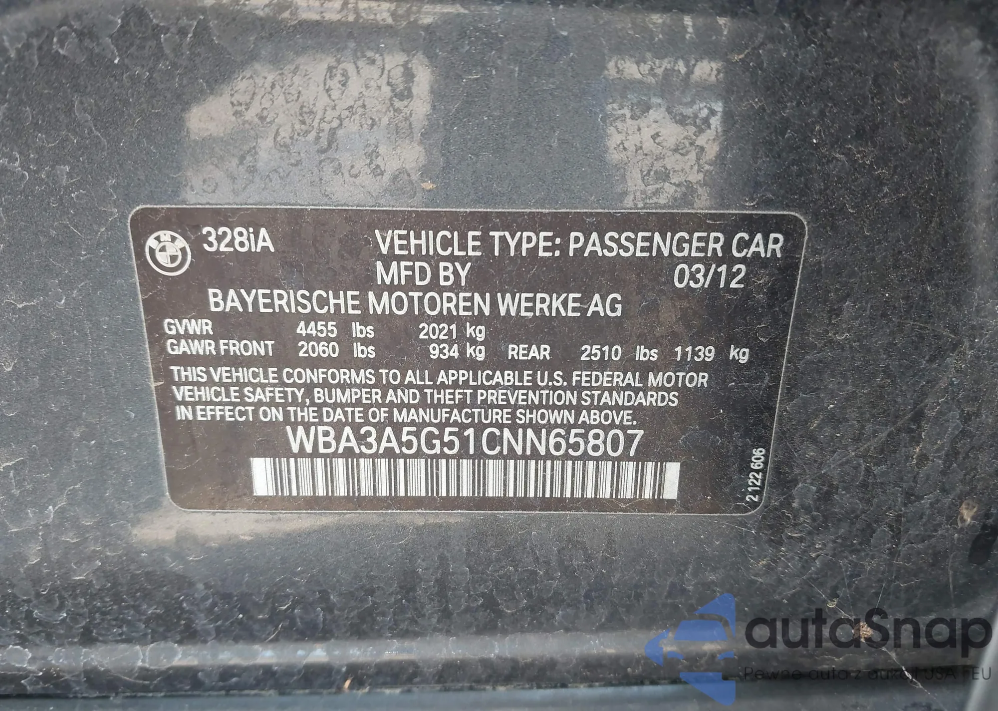 • VIN WBA3A5G51CNN65807