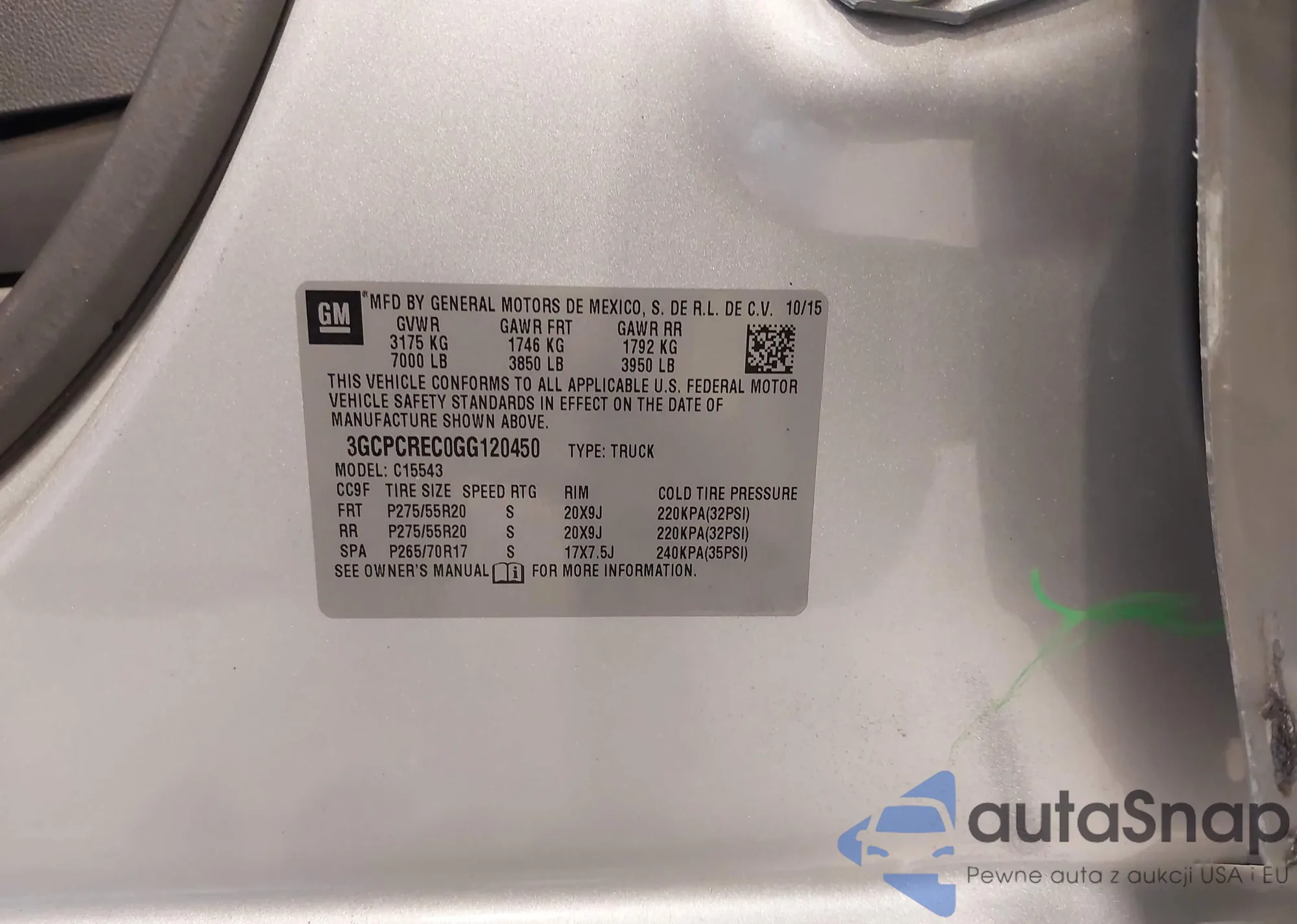 • VIN 3GCPCREC0GG120450