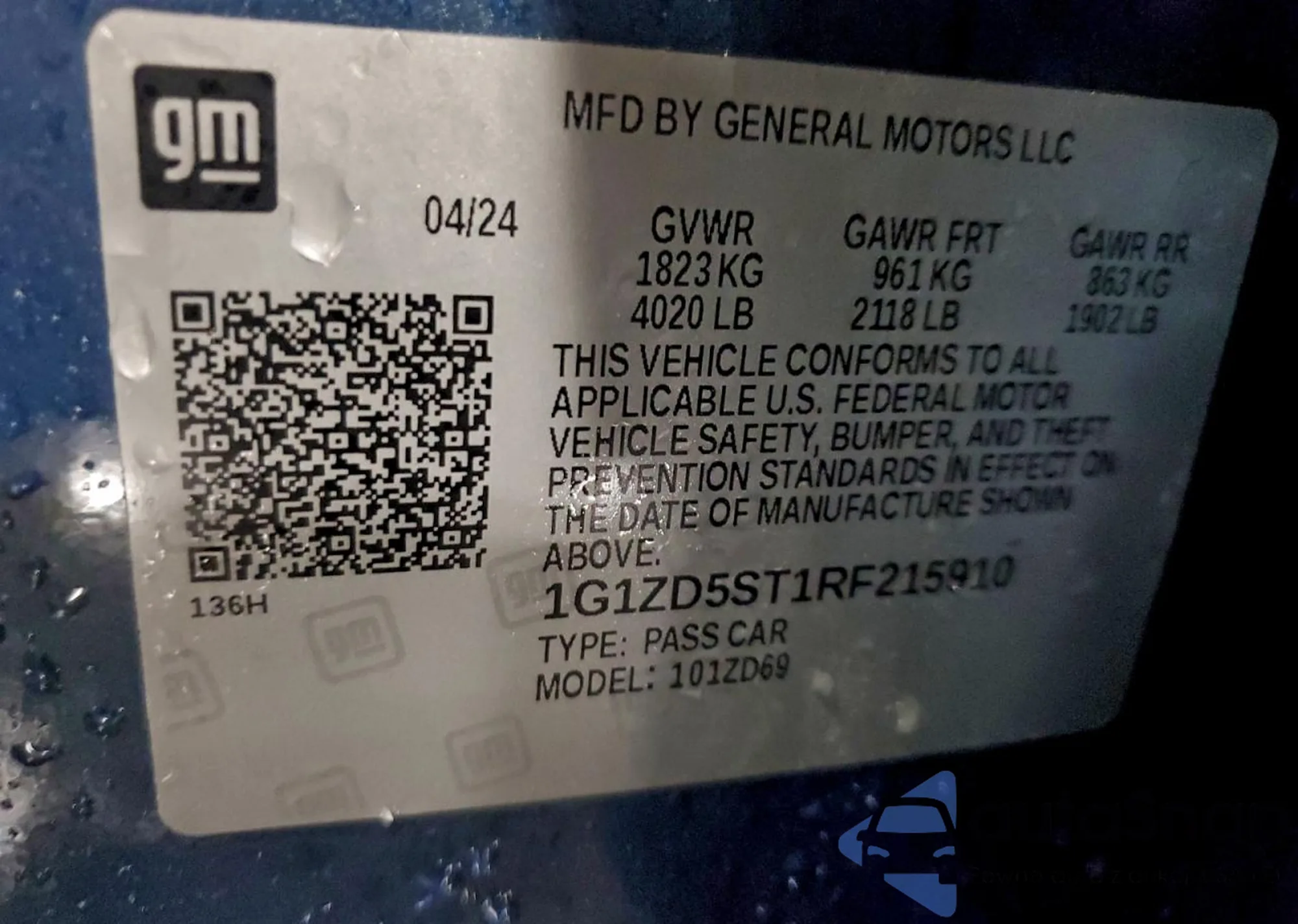 LOT: 96606435 VIN: 1G1ZD5ST1RF215910