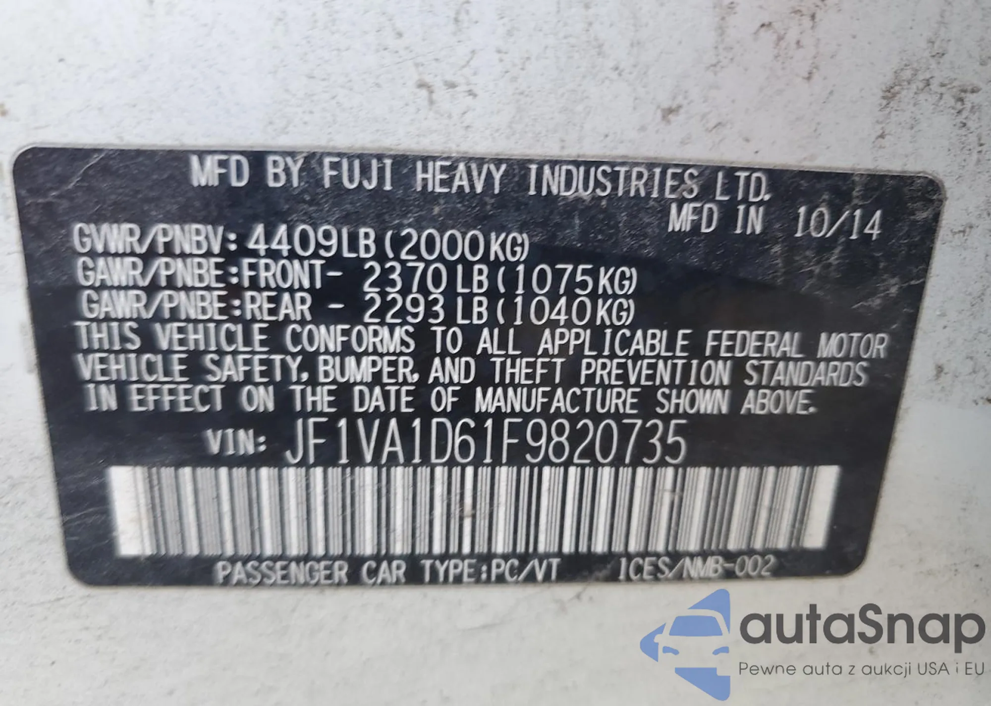 LOT: 87059255 VIN: JF2GUABC9R8304007
