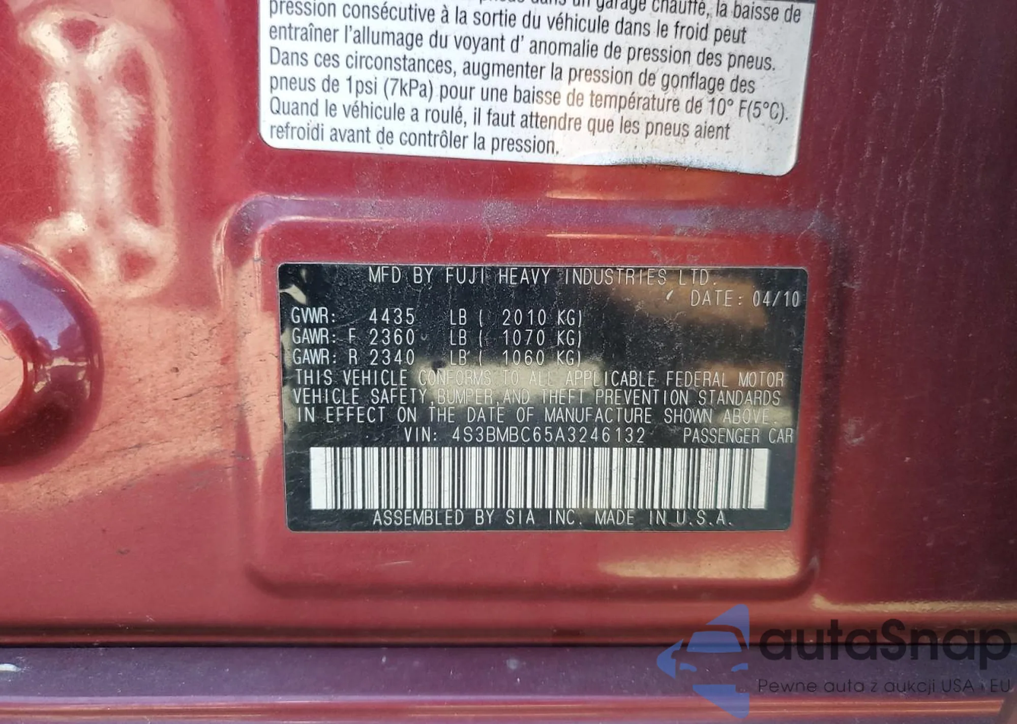 LOT: 82466005 VIN: JF1GPAH68CH240532
