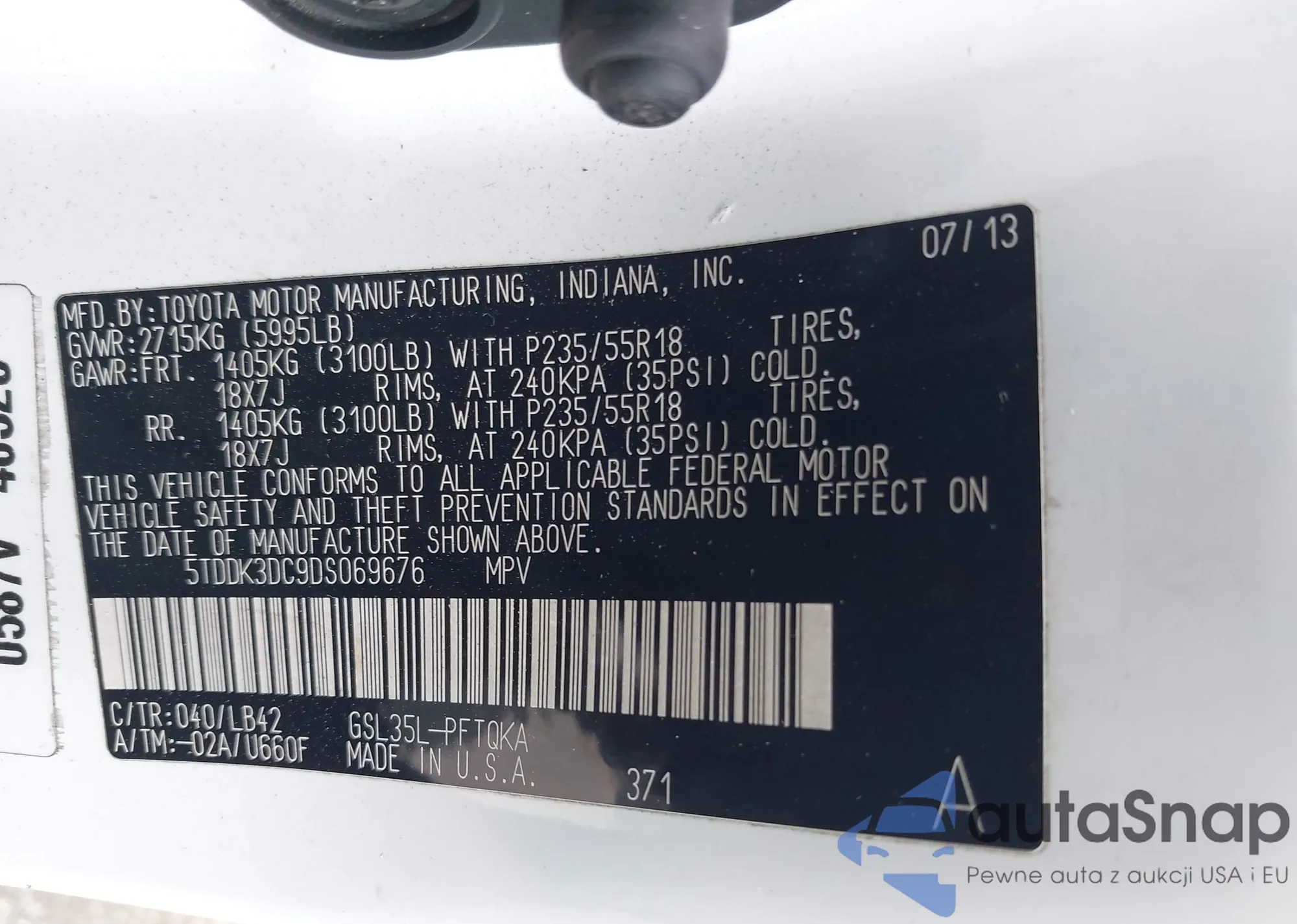 • VIN 5TDDK3DC9DS069676