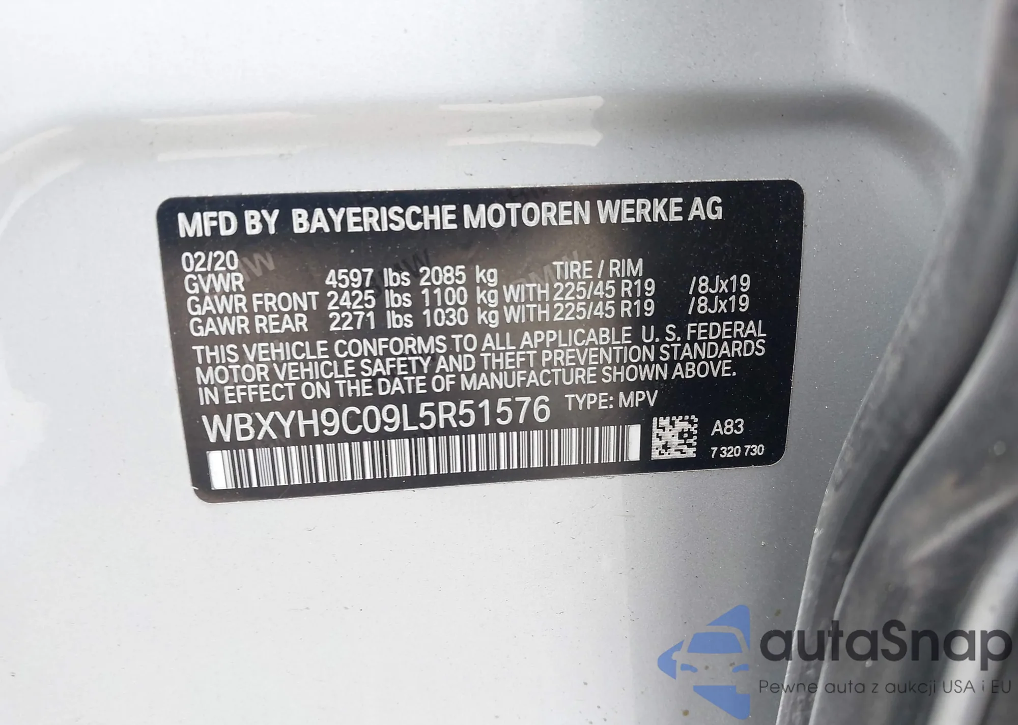 LOT: 43774695 VIN: WBXYH9C09L5R51576