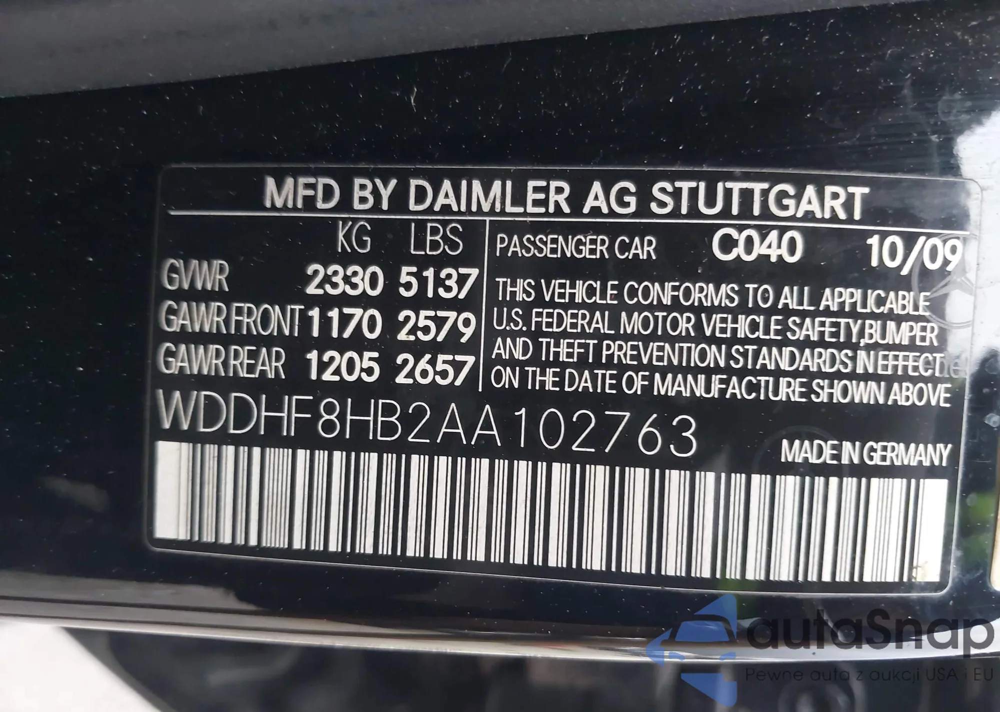 LOT: 43817514 VIN: WDDHF8HB2AA102763