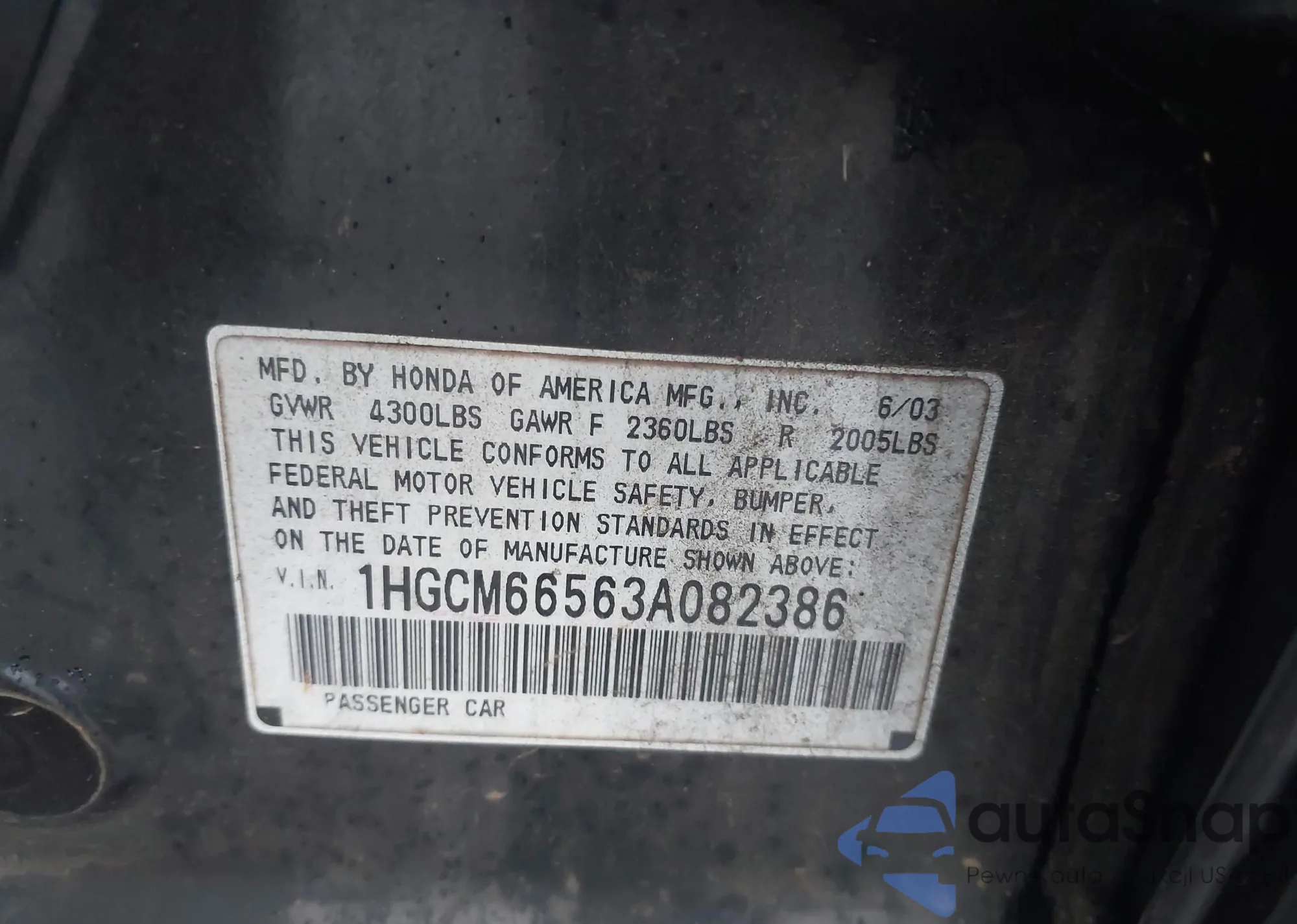 LOT: 43827764 VIN: 1HGCM66563A082386