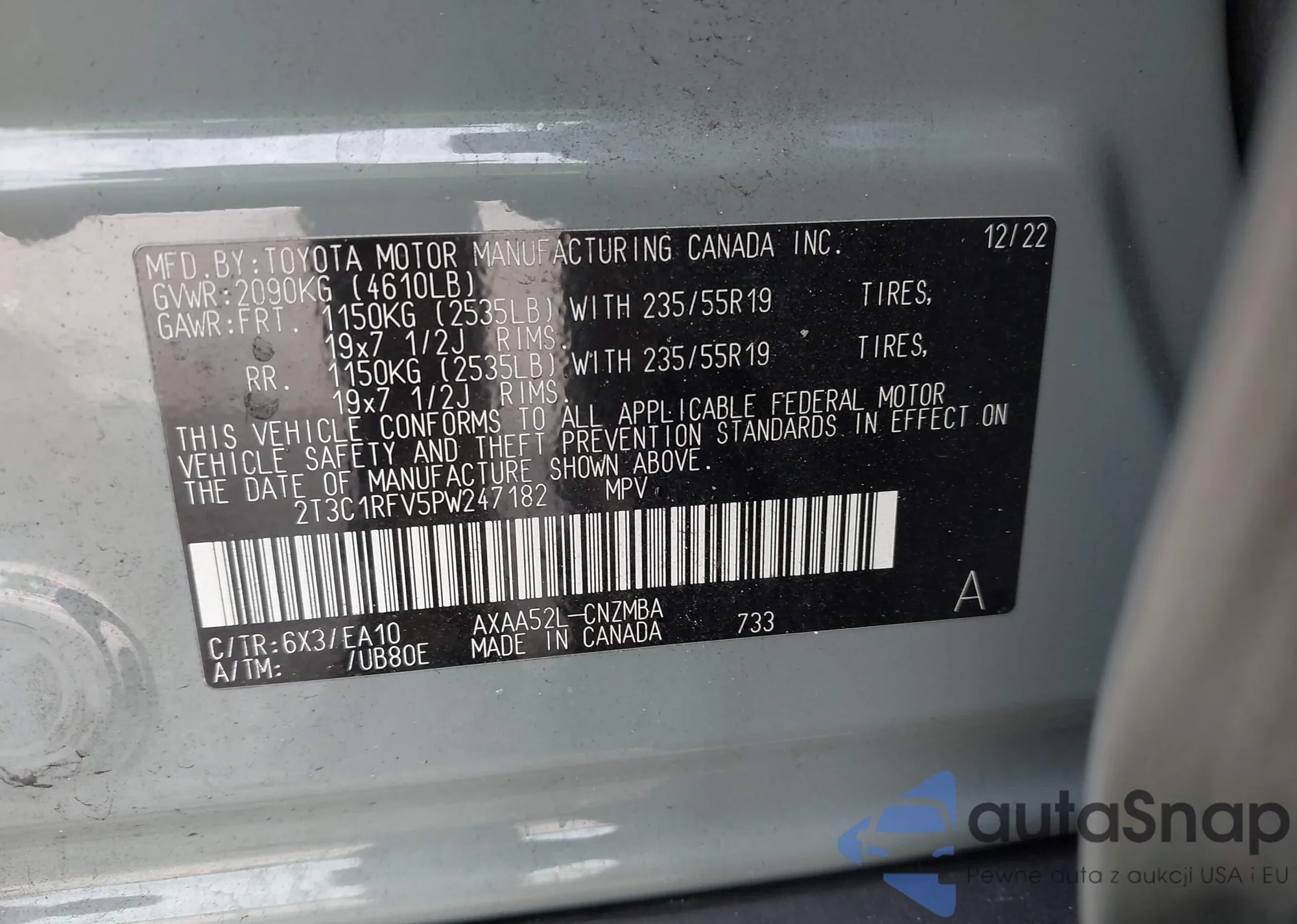 LOT: 43633835 VIN: 2T3C1RFV5PW247182