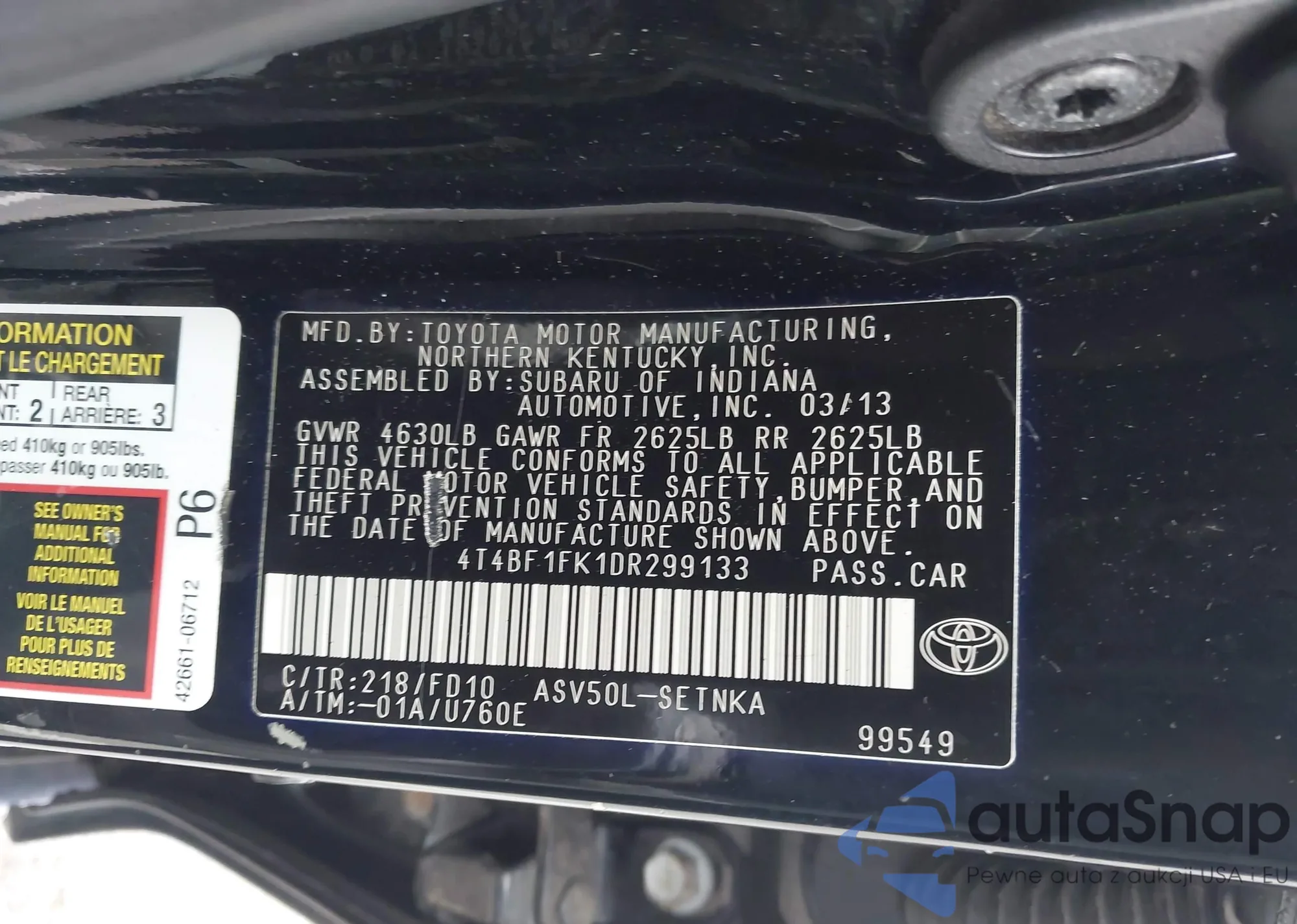 • VIN 4T4BF1FK1DR299133