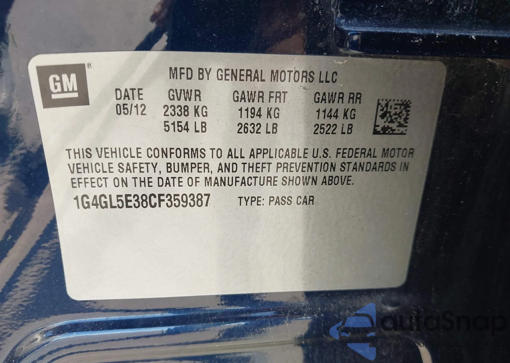 LOT: 43627396 VIN: 1G1ZD5ST3LF038977