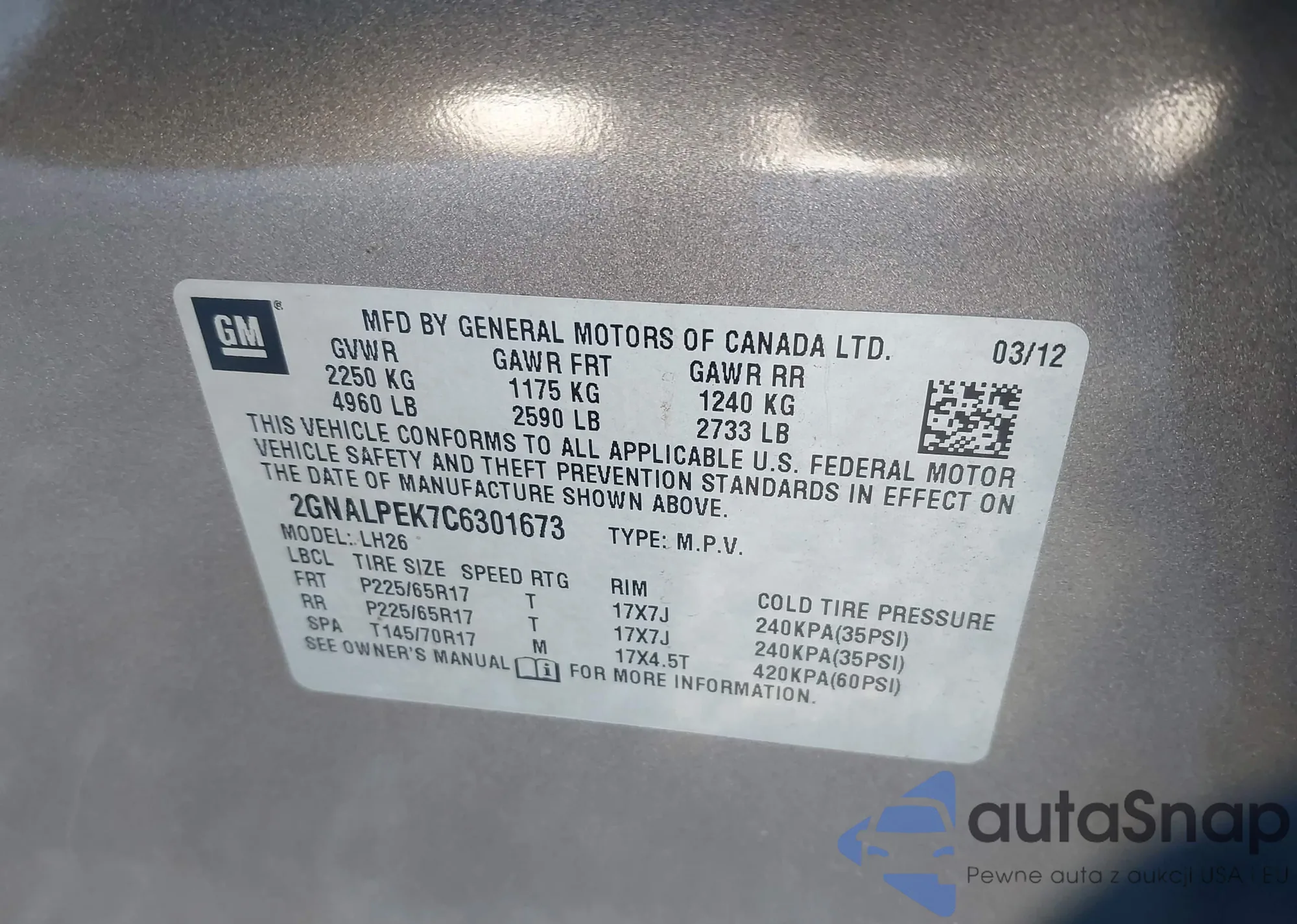 • VIN 2GNALPEK7C6301673