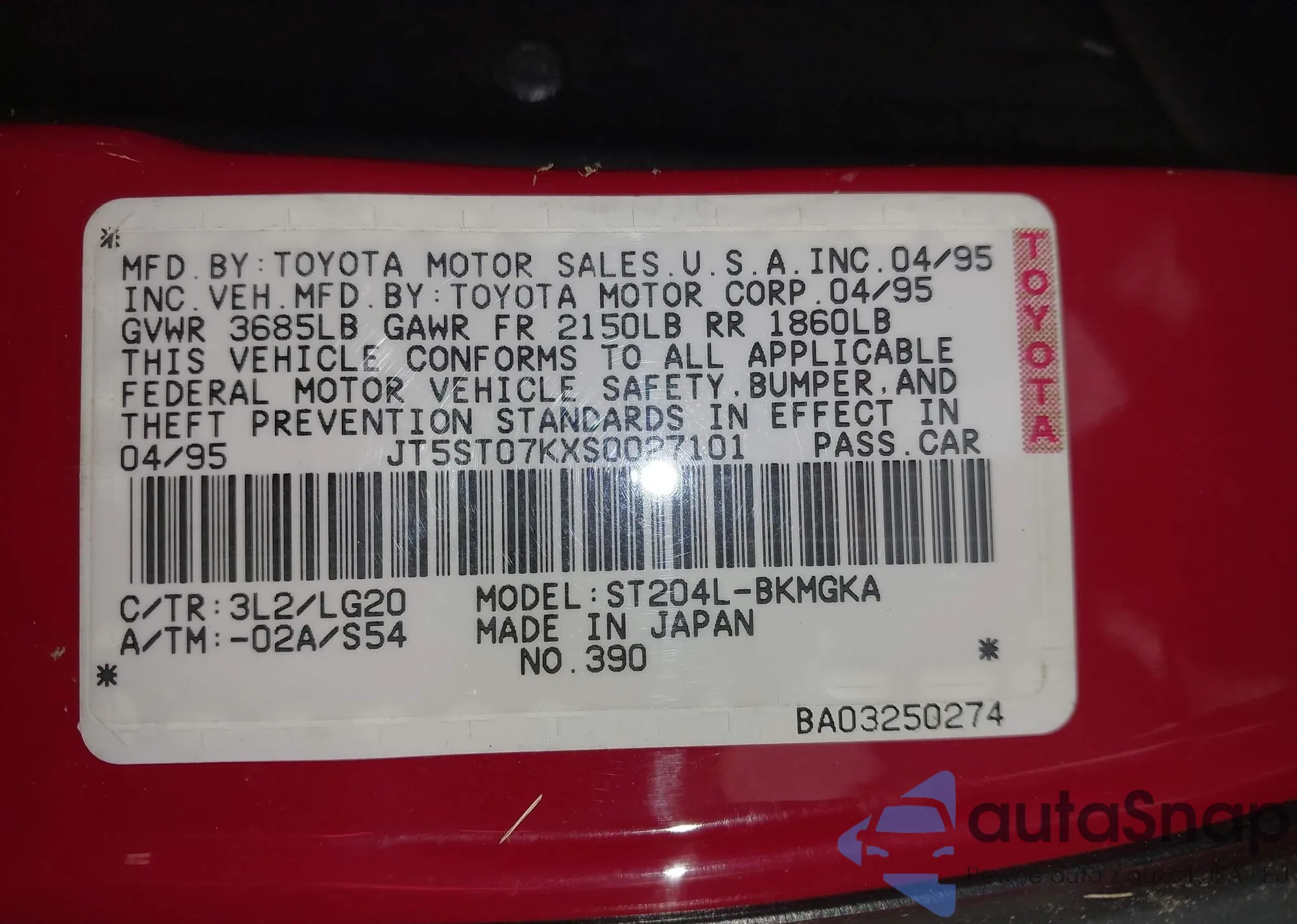 • VIN JT5ST07KXS0027101