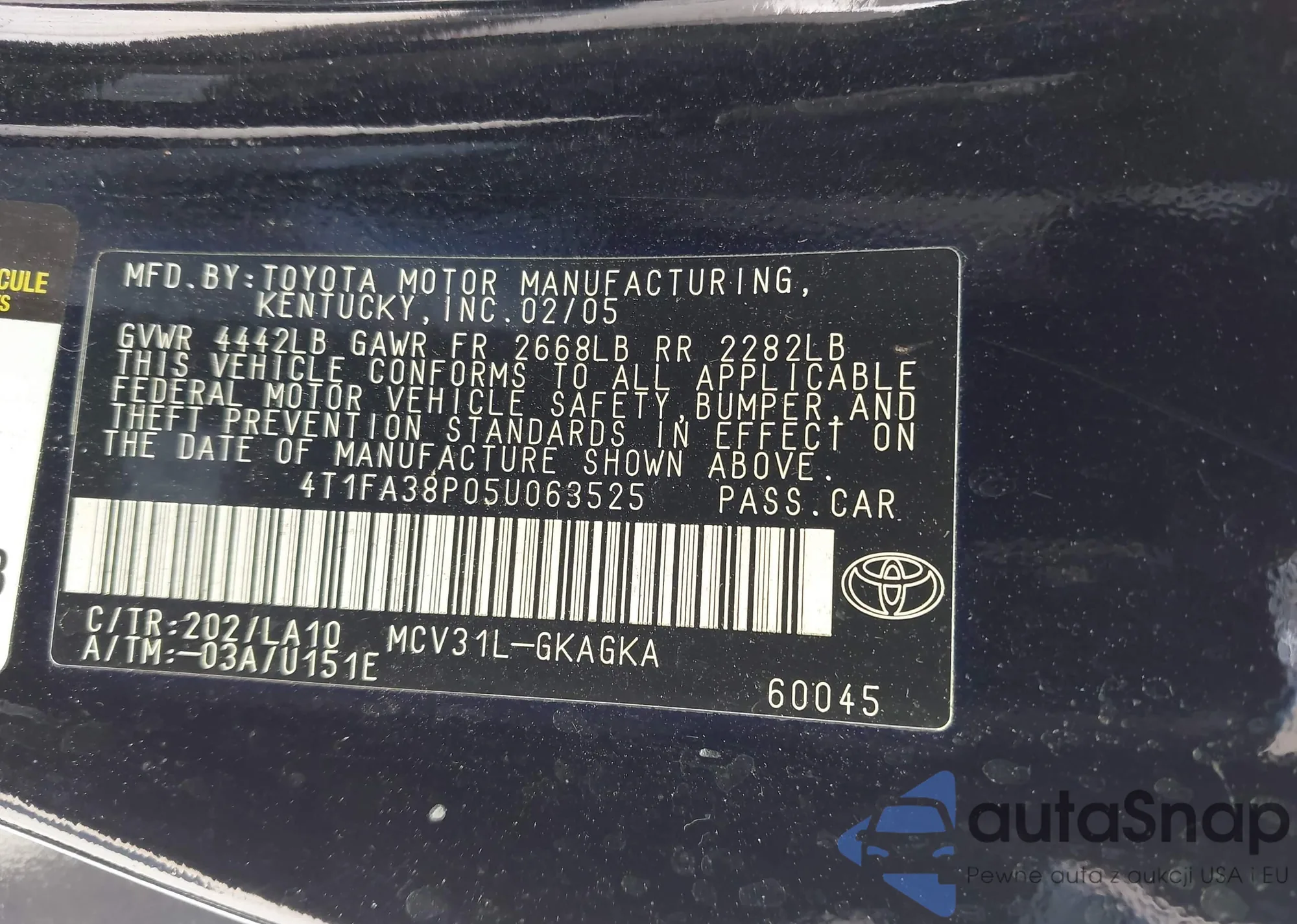 LOT: 43913993 VIN: 4T1BE46K59U305344