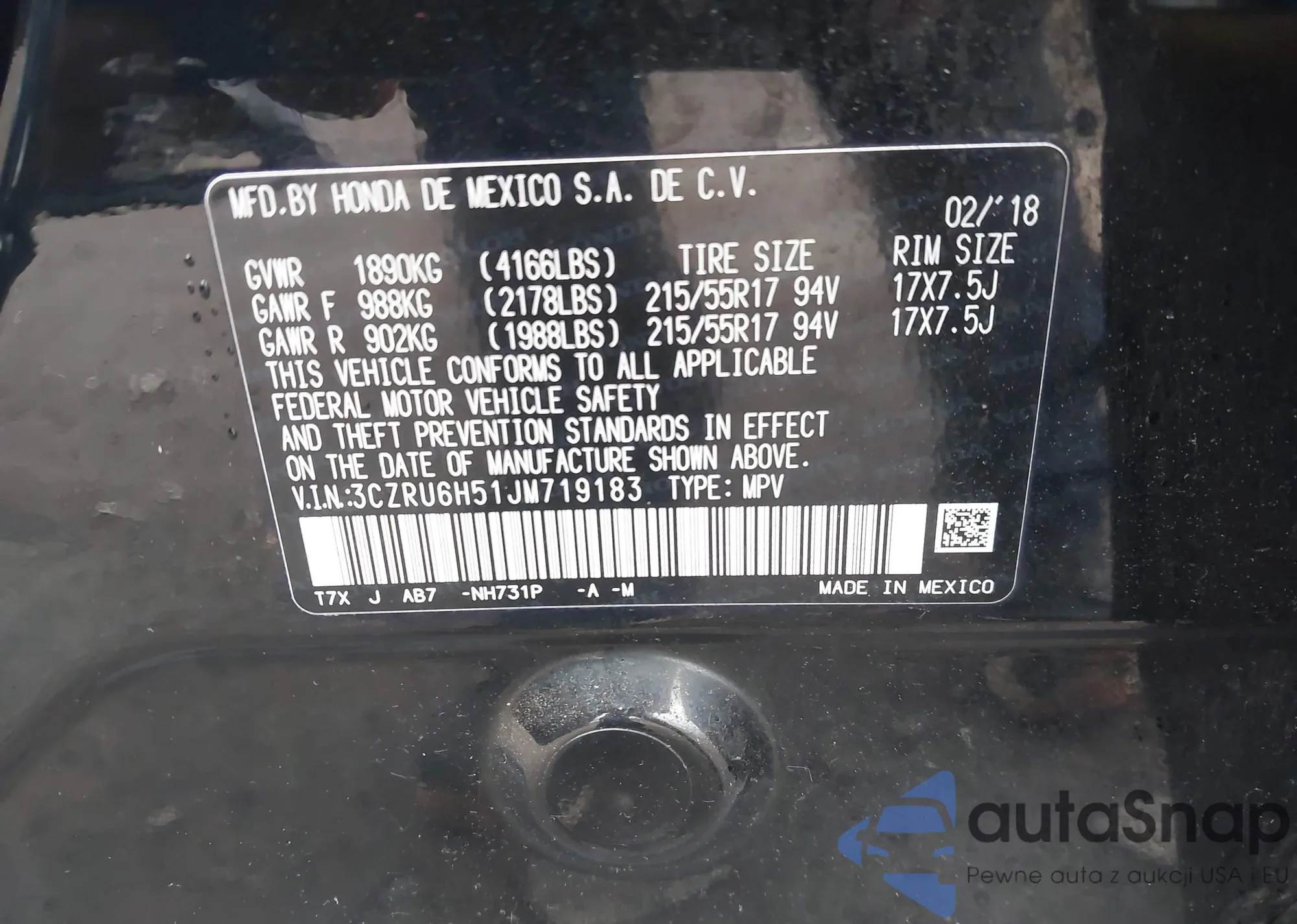 • VIN 3CZRU6H51JM719183