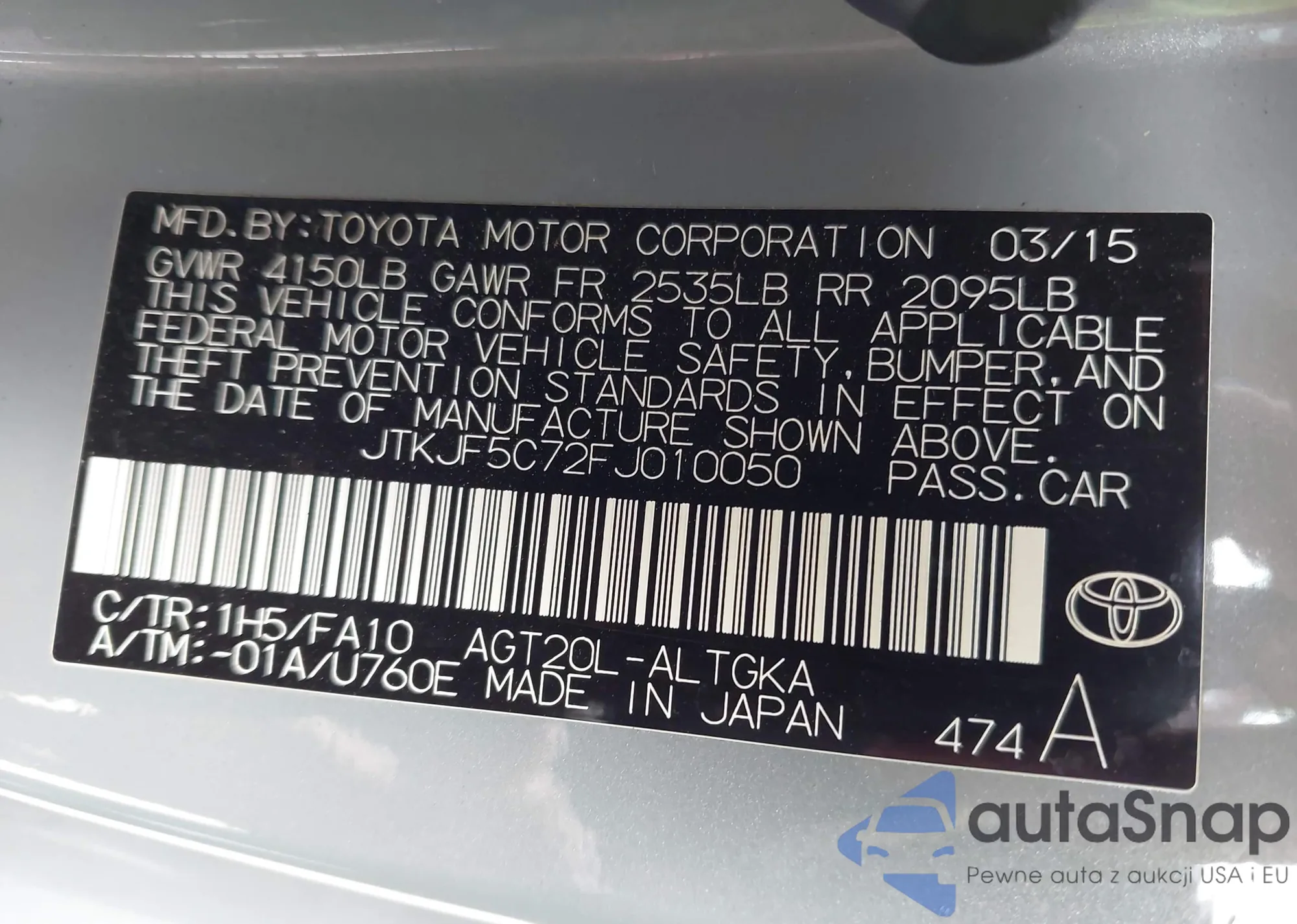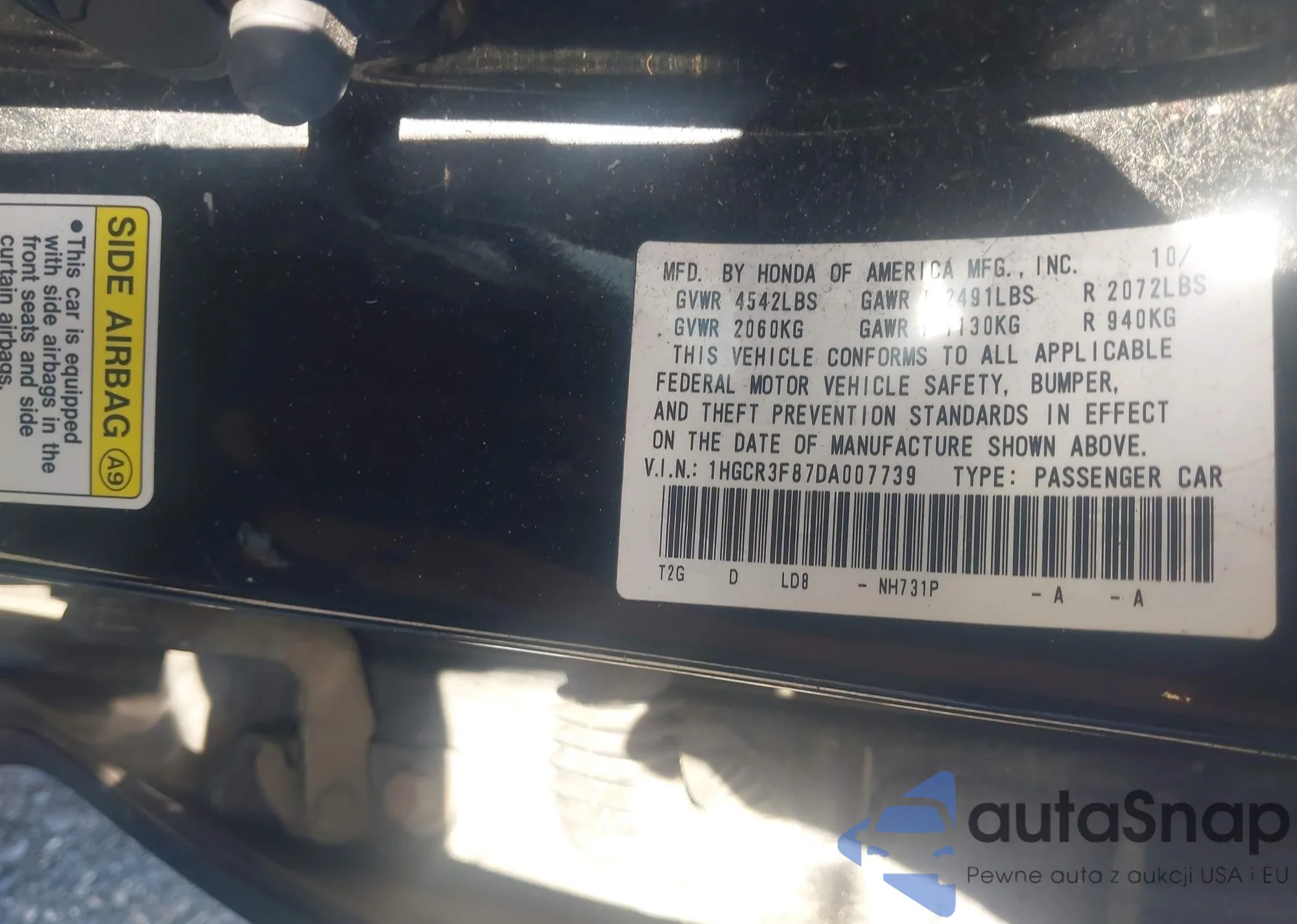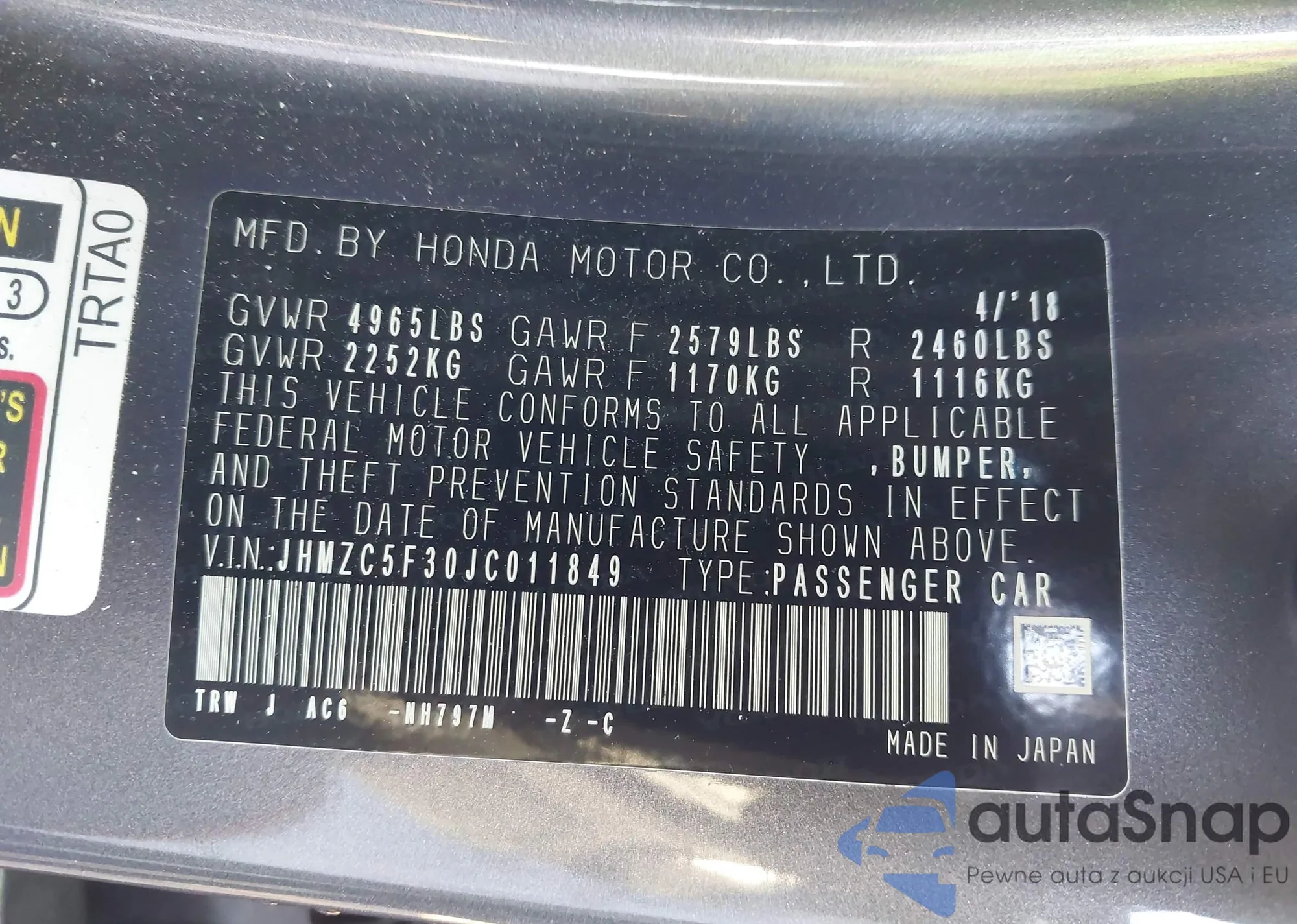 LOT: 43681453 VIN: JHMZC5F30JC011849