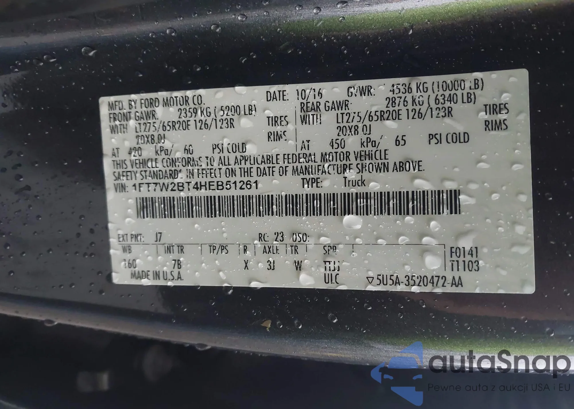 • VIN 1FT7W2BT4HEB51261