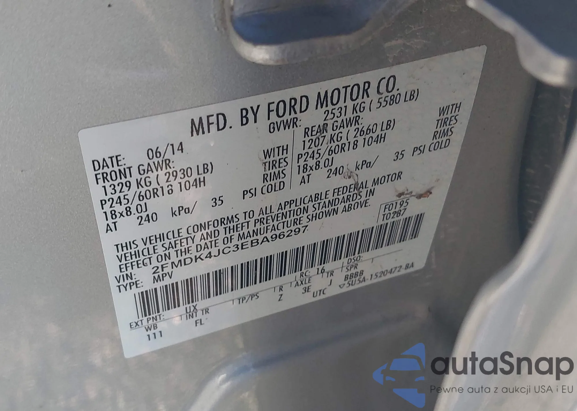 • VIN 2FMDK4JC3EBA96297