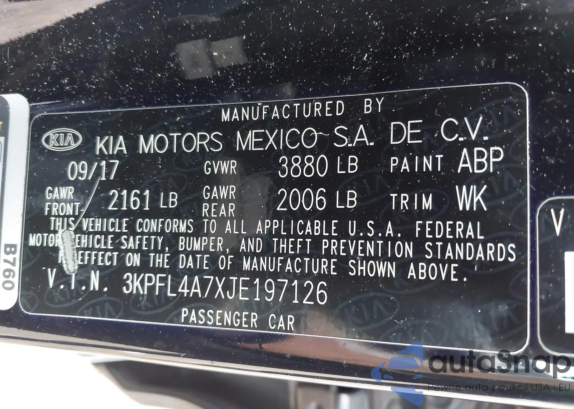 • VIN 3KPFL4A7XJE197126