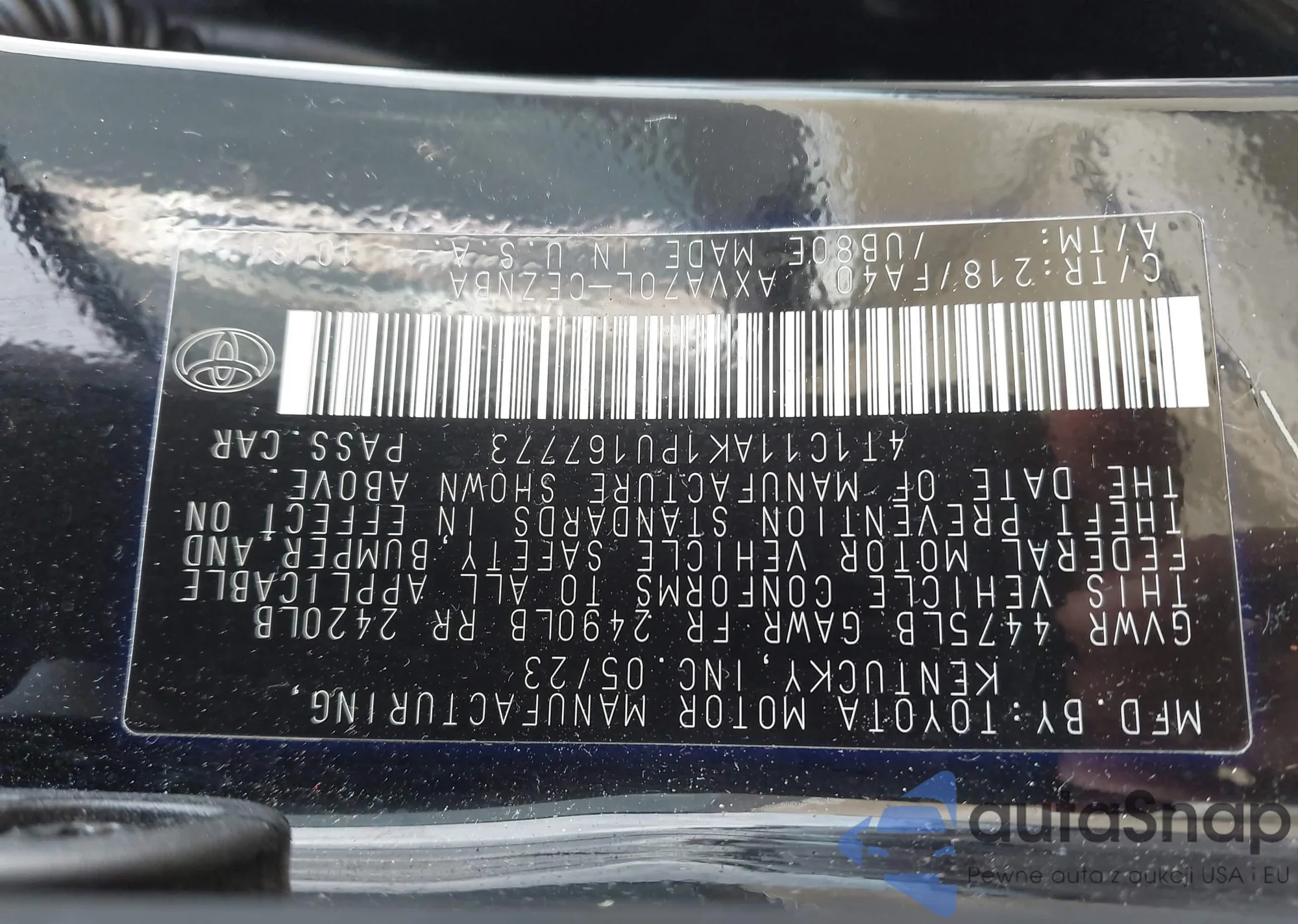 LOT: 43636675 VIN: 4T1C11AK1PU167773