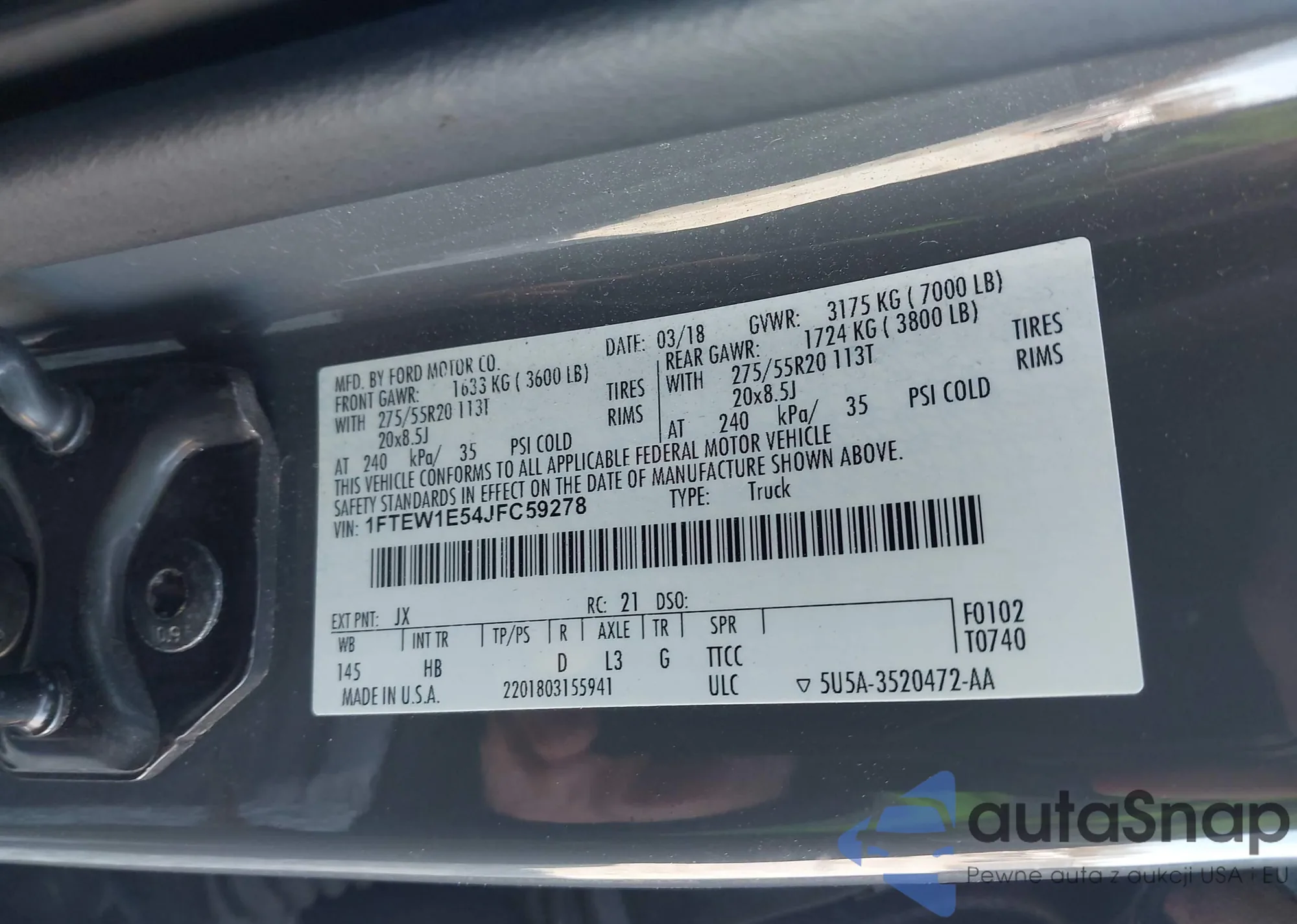 LOT: 43805260 VIN: 1FTEW1E54JFC59278