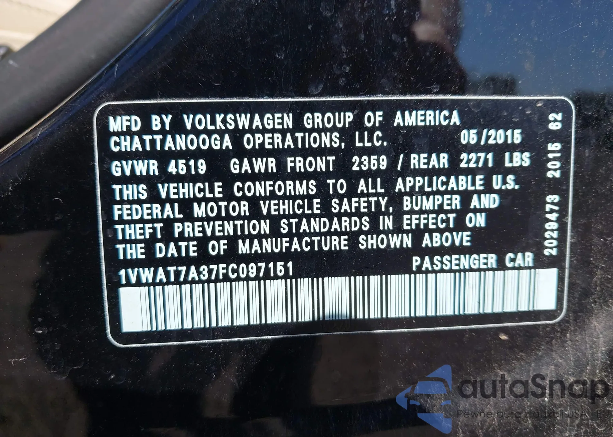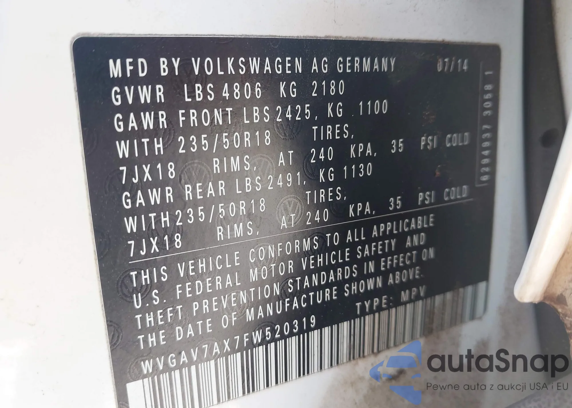 • VIN WVGAV7AX7FW520319