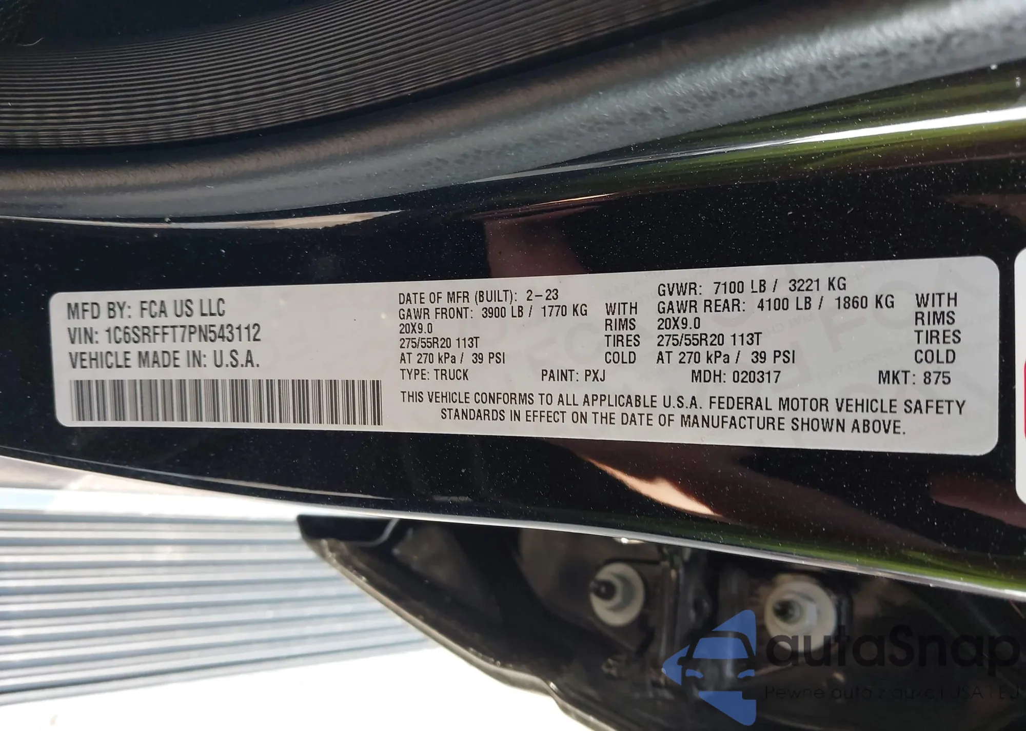 • VIN 5J6RM3H70DL022724