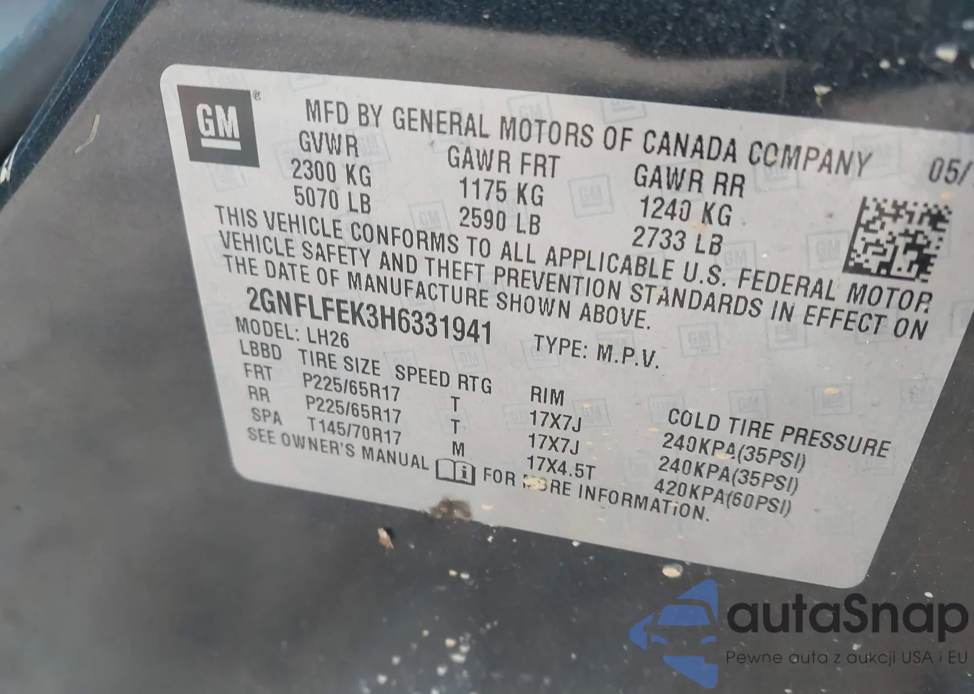 • VIN 2GNFLFEK3H6331941