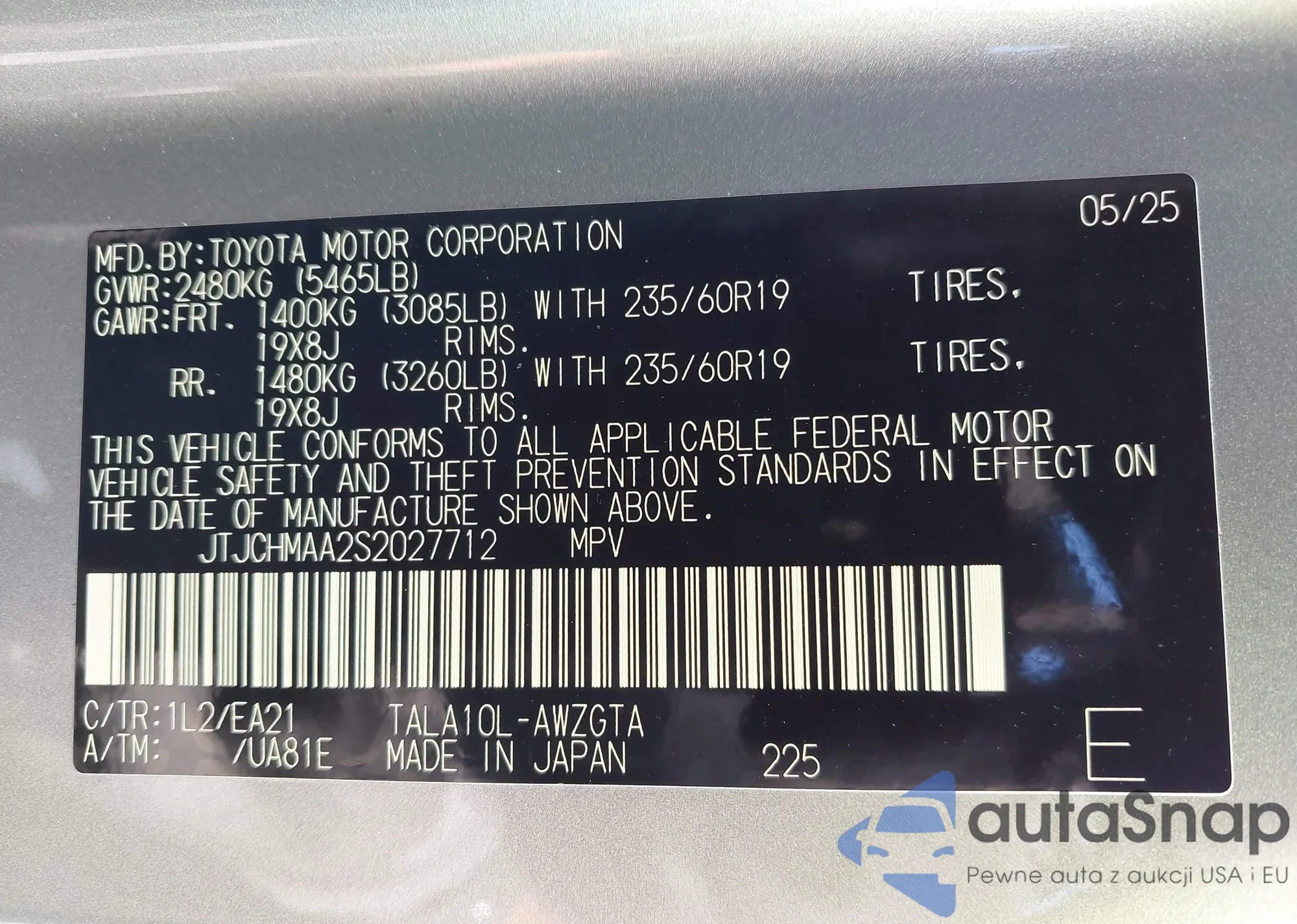 • VIN JTJCHMAA2S2027712
