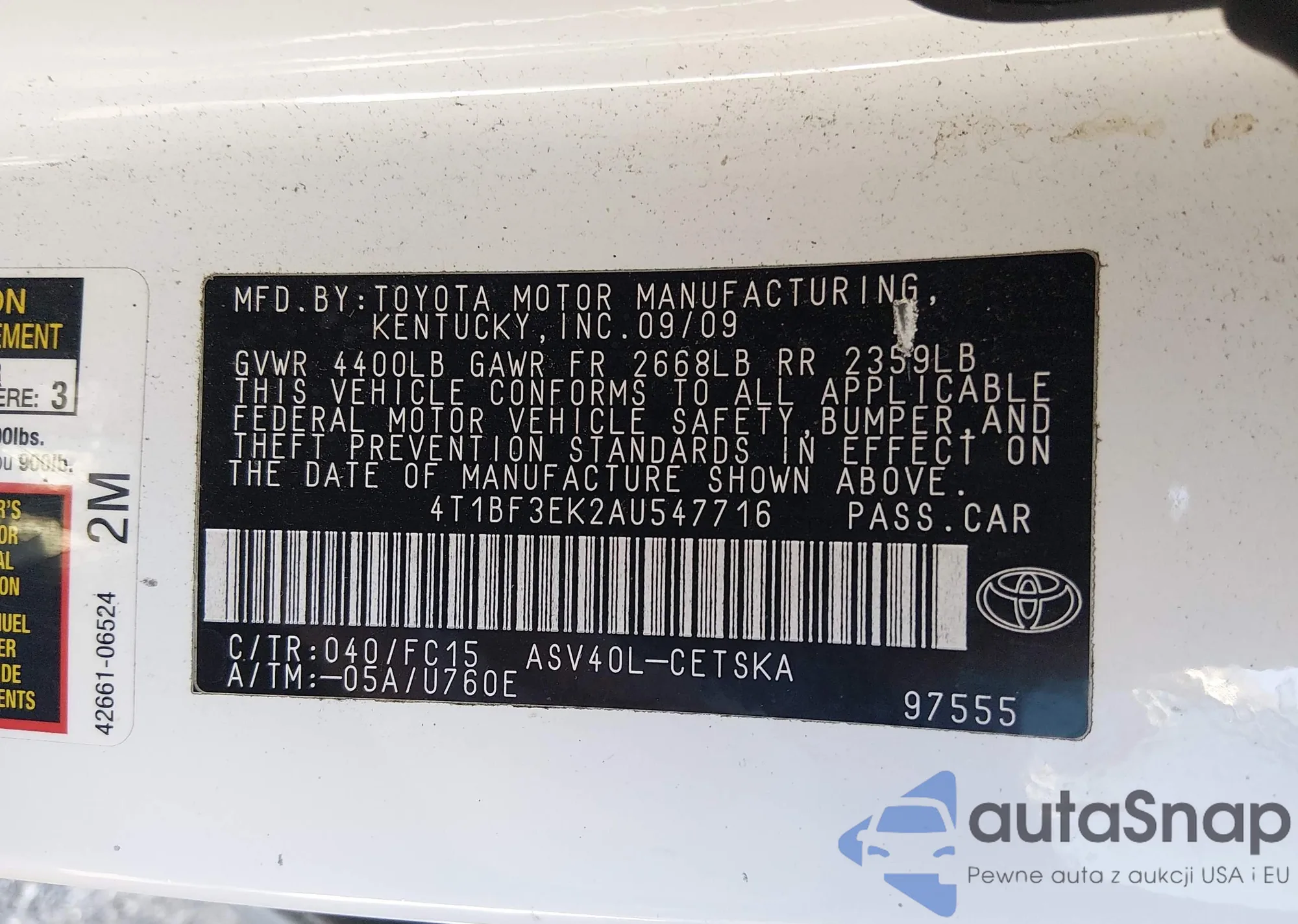 LOT: 43433111 VIN: 2T3W1RFV7KW025975