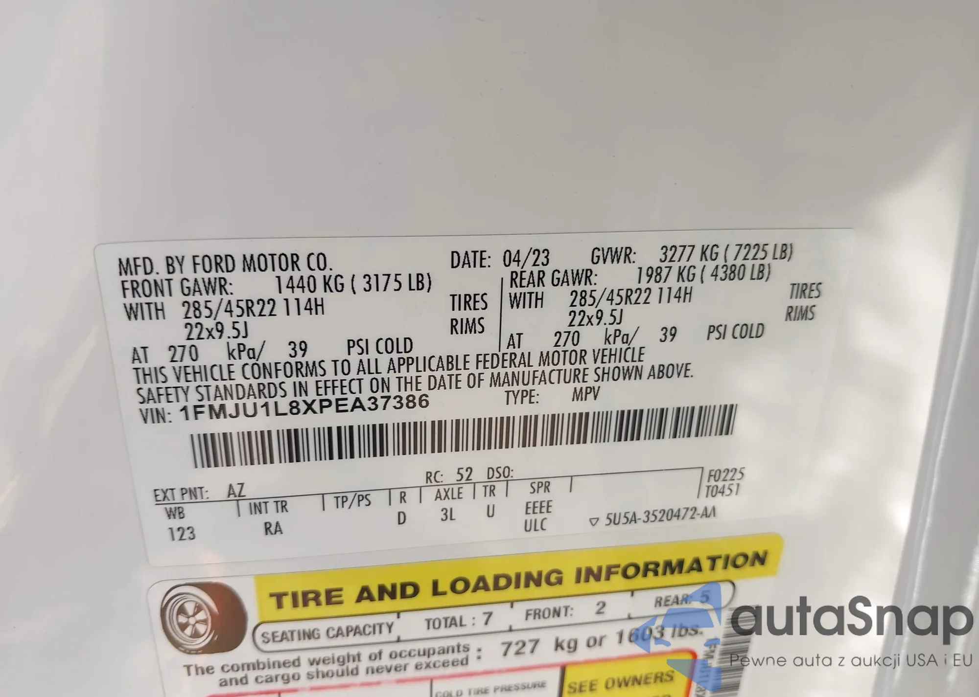 • VIN 1FMJU1L8XPEA37386