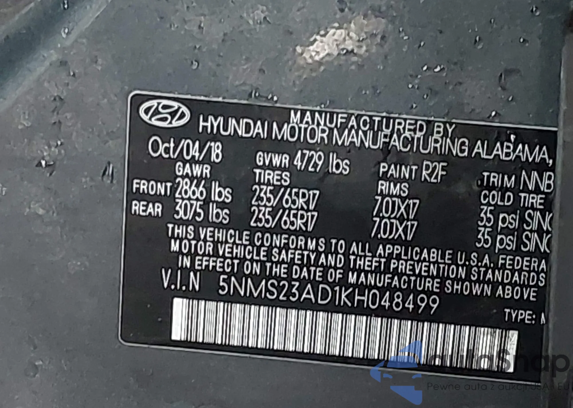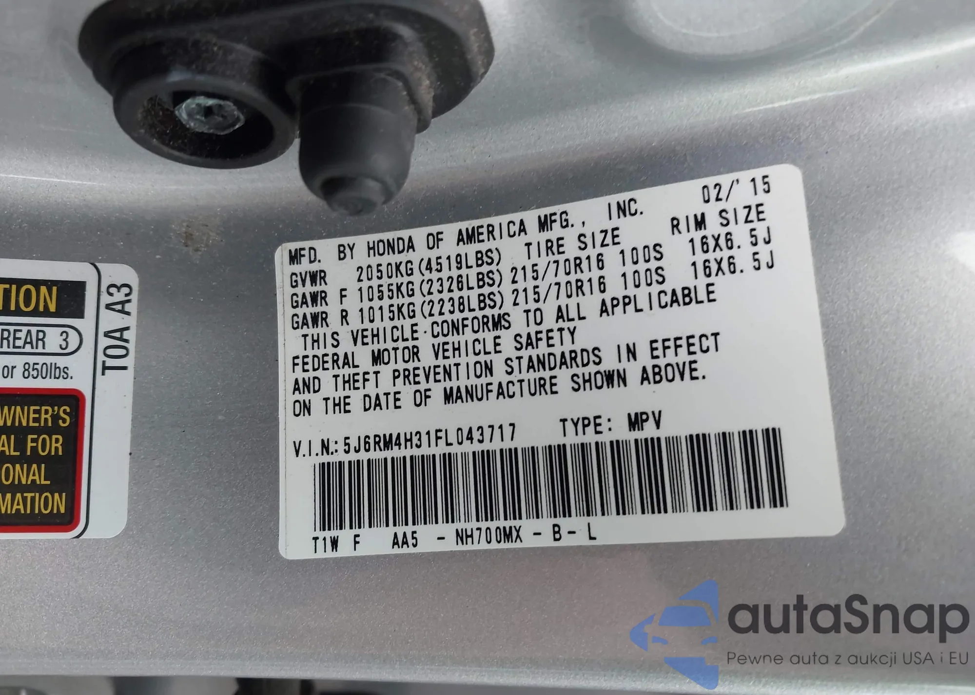 • VIN 5J6RM4H31FL043717