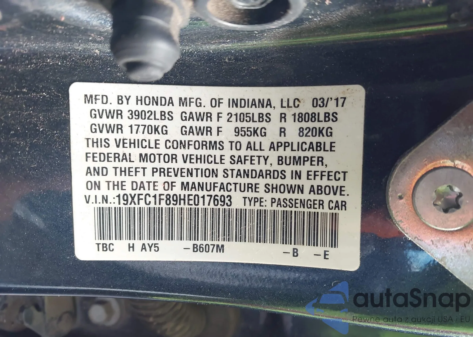 LOT: 43603551 VIN: 19XFC1F33GE034203