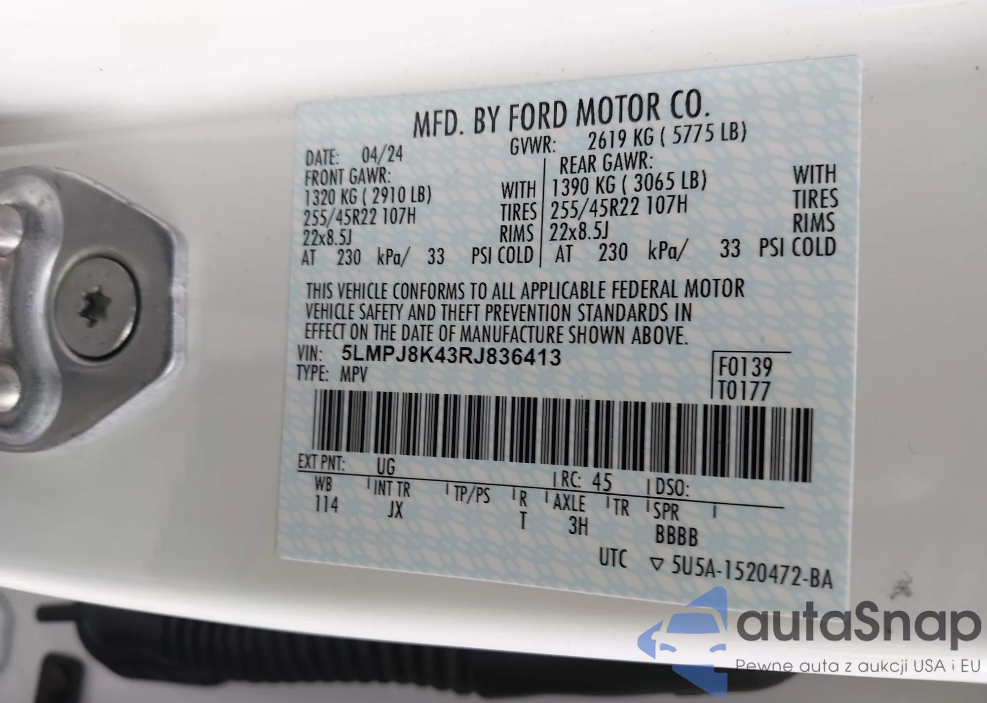 LOT: 43809593 VIN: YV4952DL5D2407389