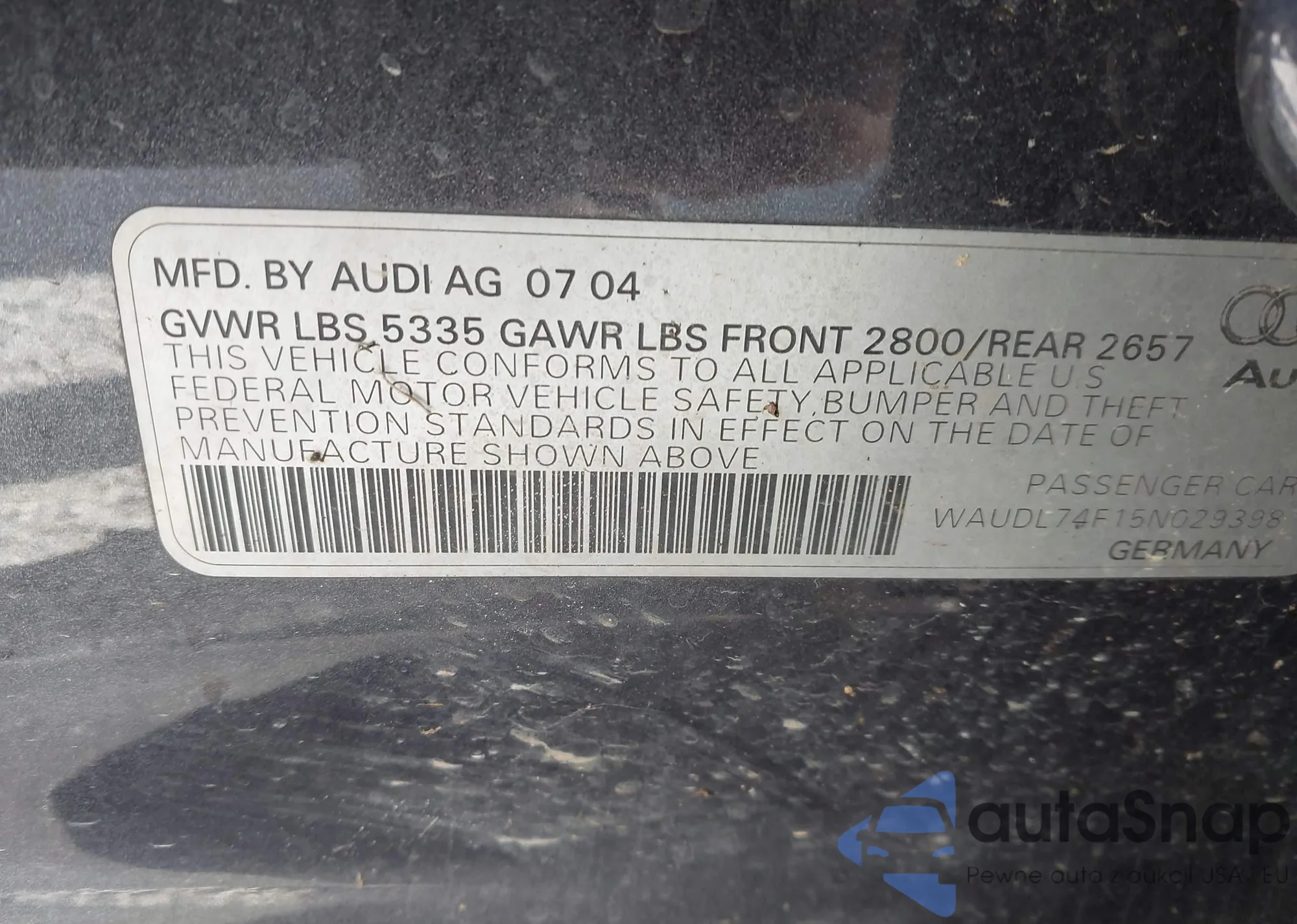 • VIN WAUDL74F15N029398