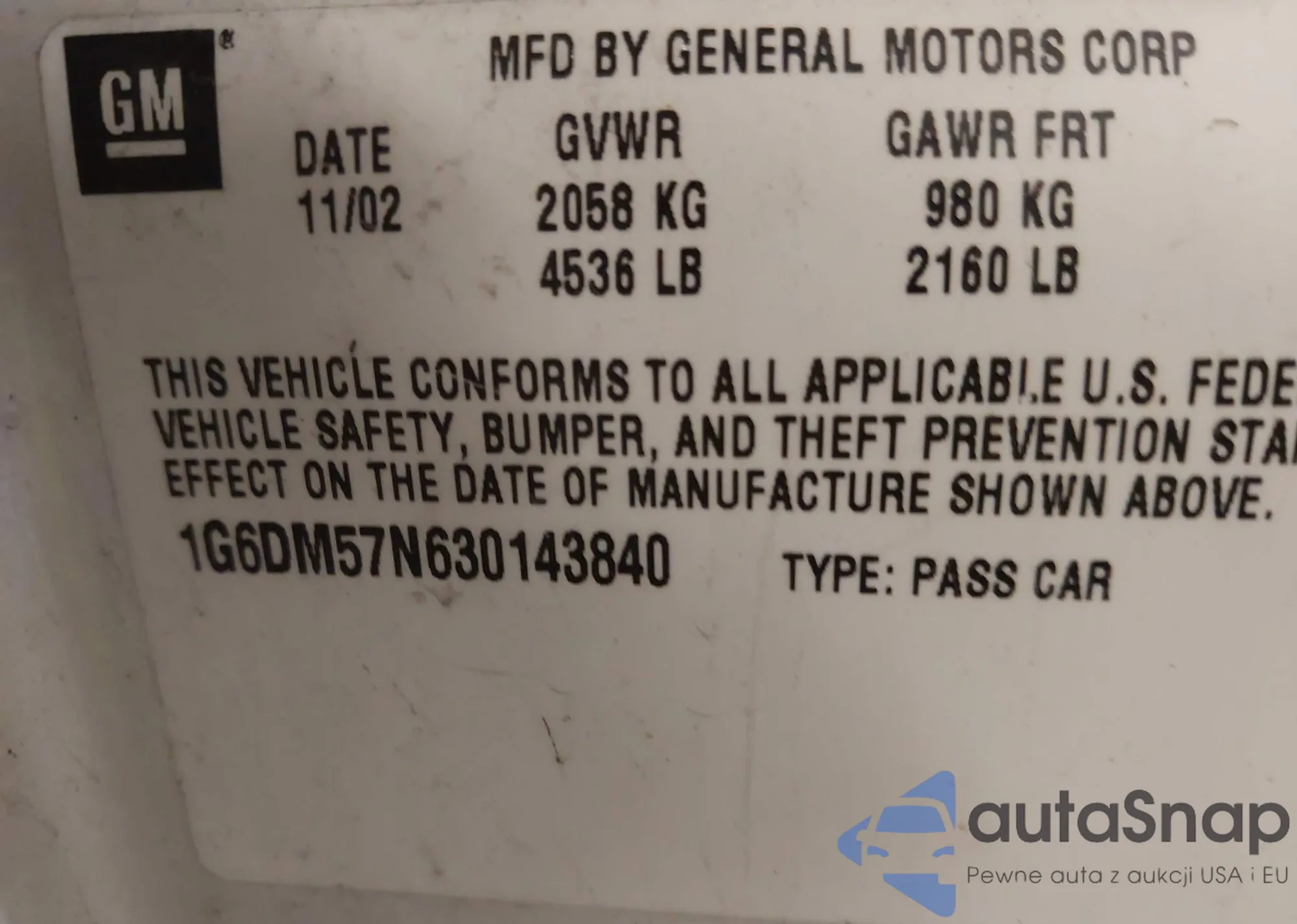 • VIN 1G6DM57N630143840