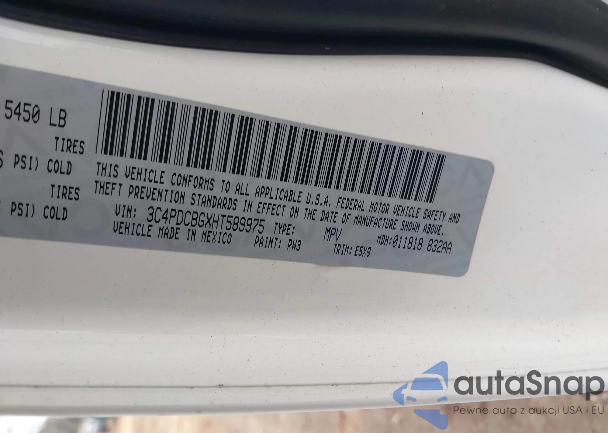 LOT: 43822231 VIN: 3C4PDCBGXHT589975