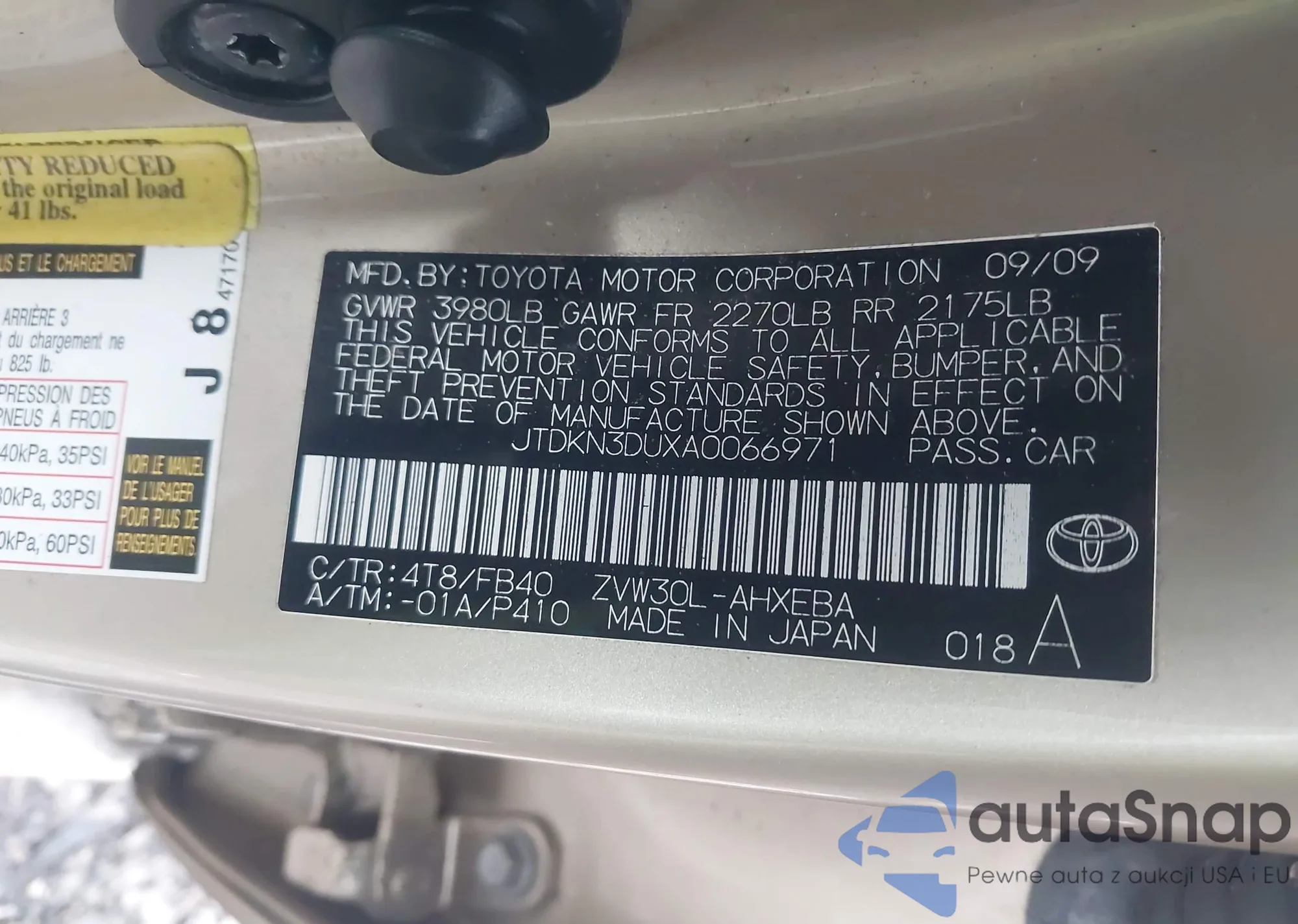 LOT: 43868134 VIN: JTDKN3DUXA0066971