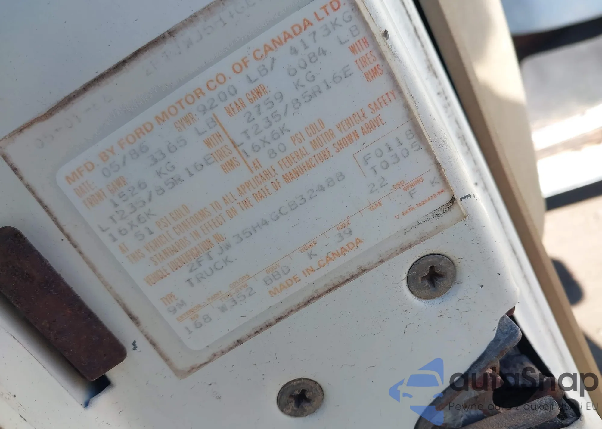 1986 Ford F350 из США, поврежденный, VIN 2FTJW35H4GCB32488